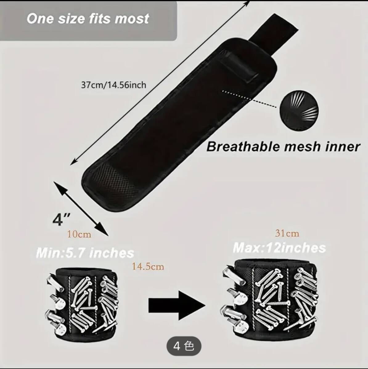 マグネット 【磁気リストバンド 黒】 ねじ 部品 落下防止 作業効率UP DIY用品 工事現場用品