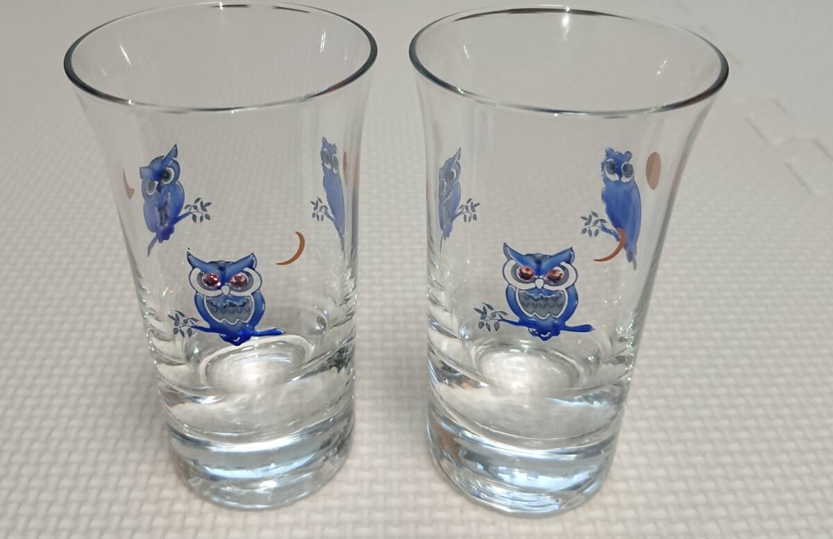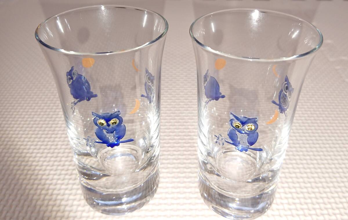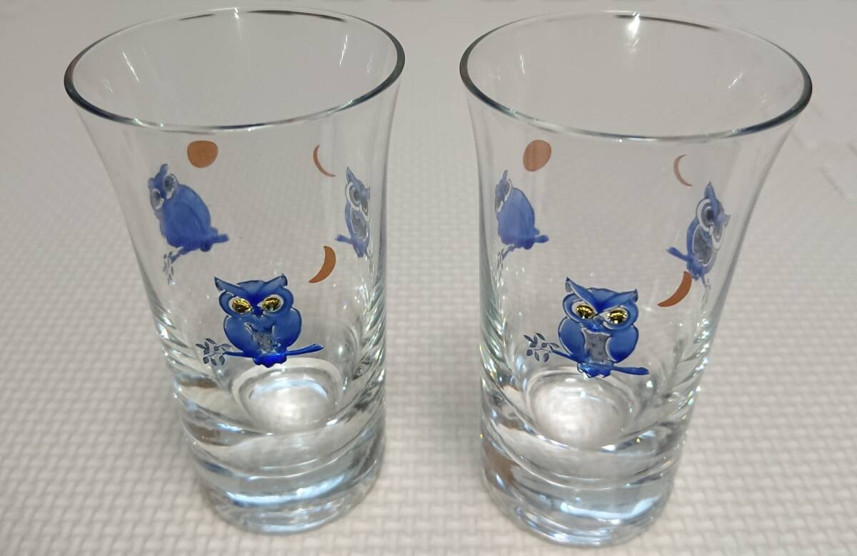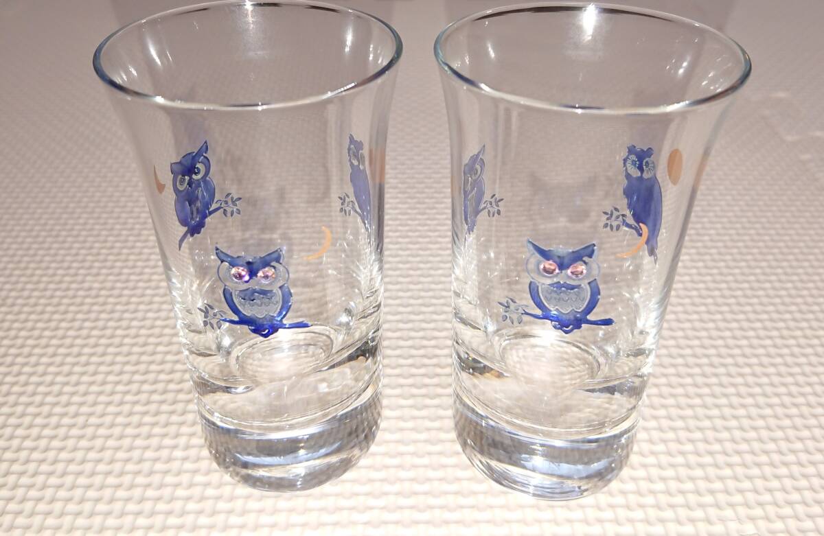 ★未使用★ 幸せを呼ぶ ふくろう グラス 2個セット / ラインストーン ピンク・水色・ホワイト3色  ナック天開 一口ジュエリー