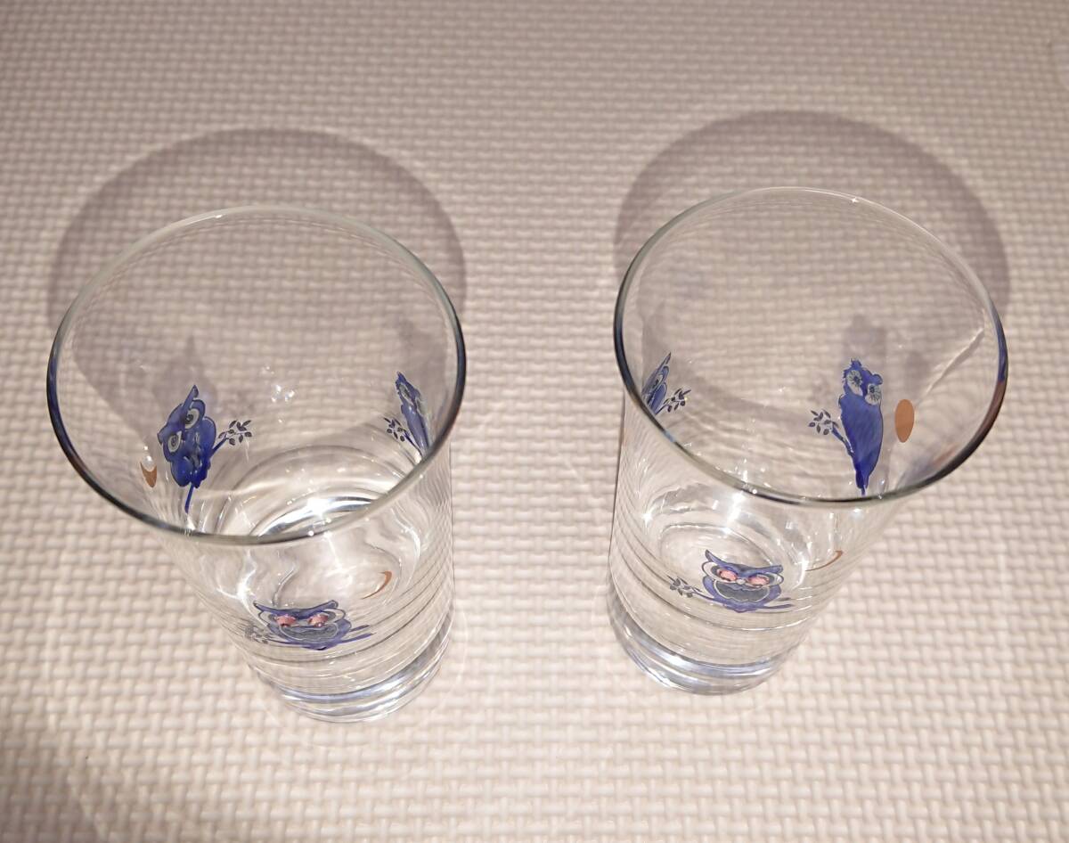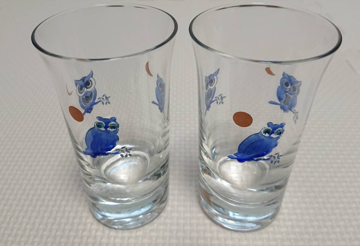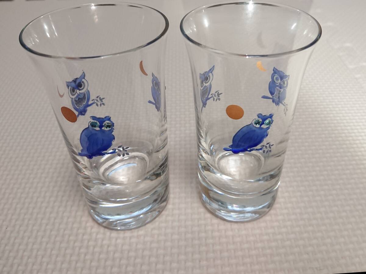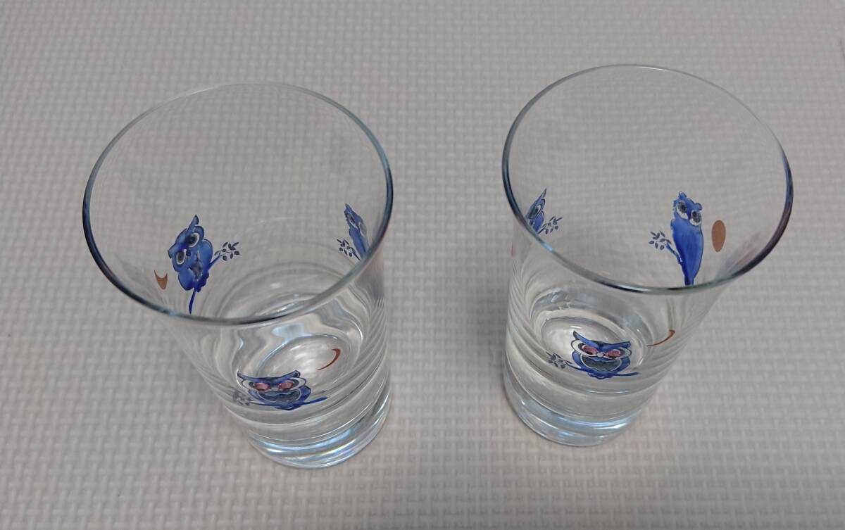 ★未使用★ 幸せを呼ぶ ふくろう グラス 2個セット / ラインストーン ピンク・水色・ホワイト3色  ナック天開 一口ジュエリー