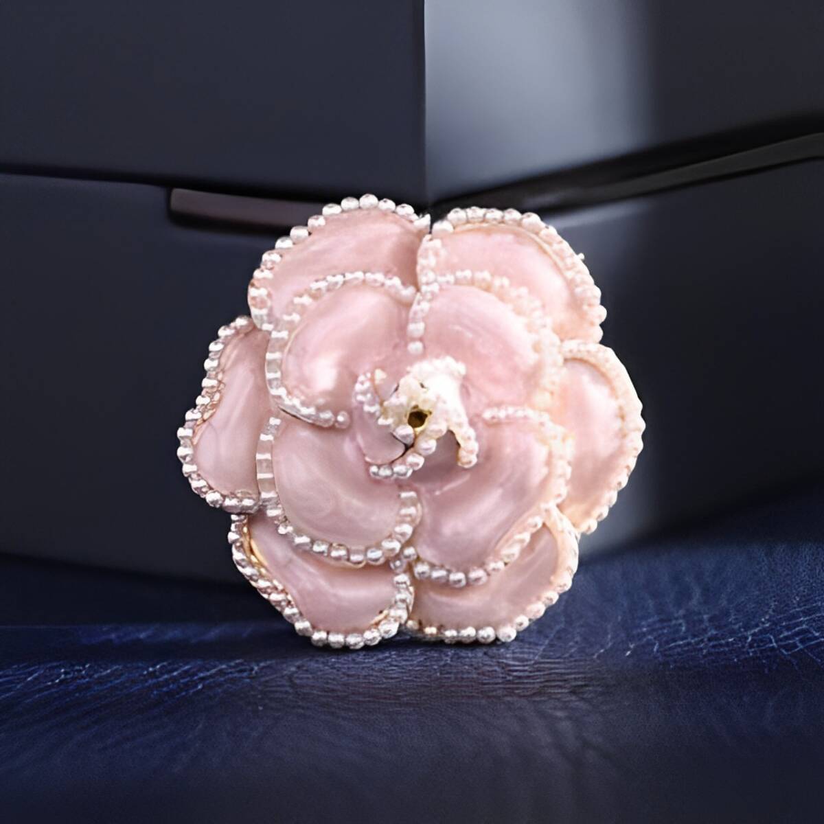【花】パール 品のあるカメリア ブローチ/ピンク