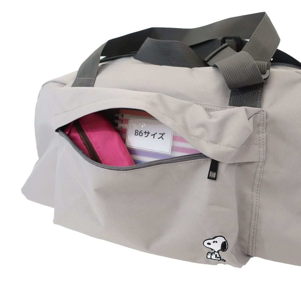 スヌーピー ボストンバッグ ピーナッツ 旅行かばん キャラクター ワンポイント刺繍シリーズ GY おすわりスヌーピー