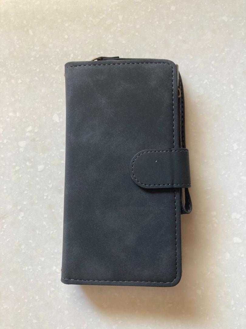 シックなフェイクレザーで高級感があります。カードやチケットなどを収納できるポケットが6か所と財布がが付いています。専用ストラップも付属しています。
