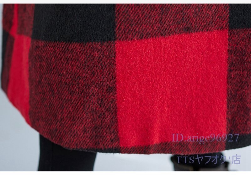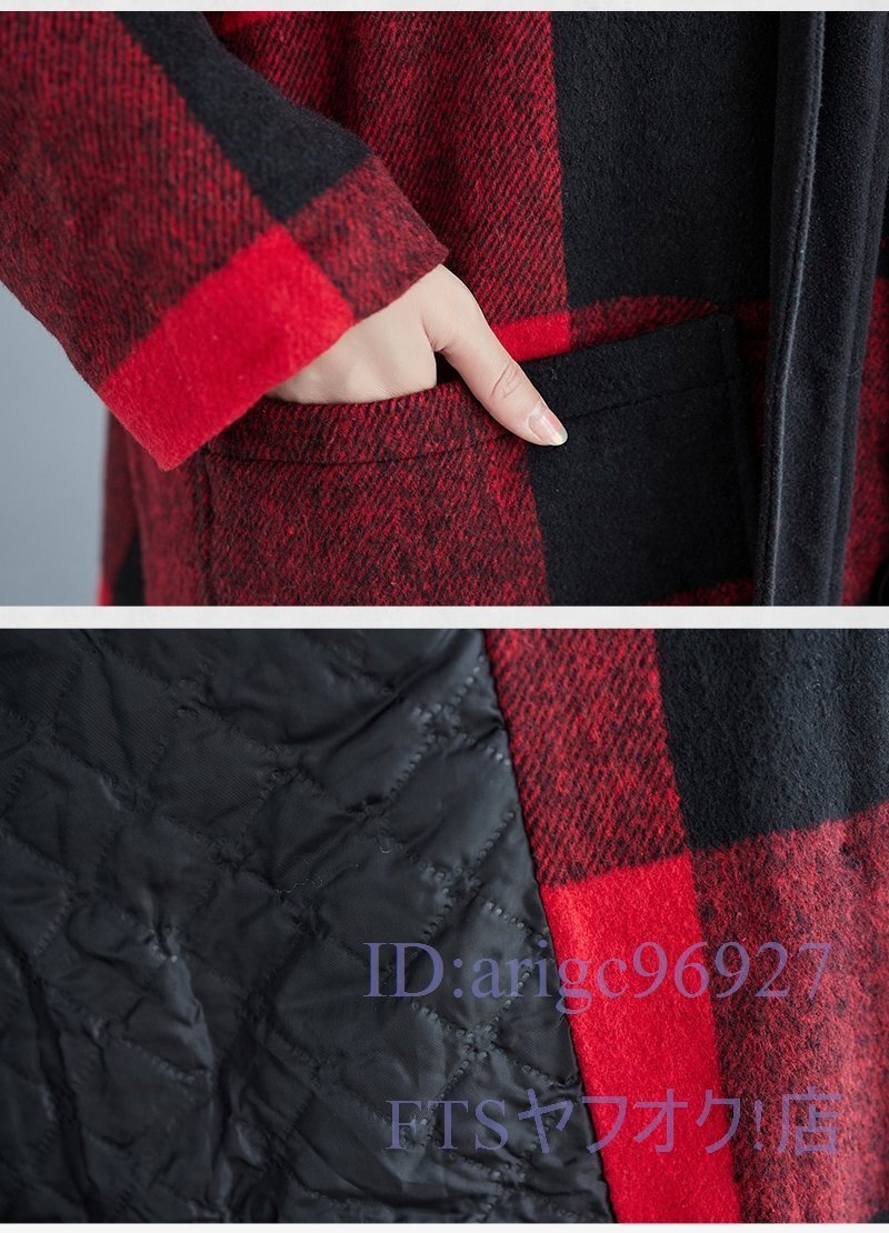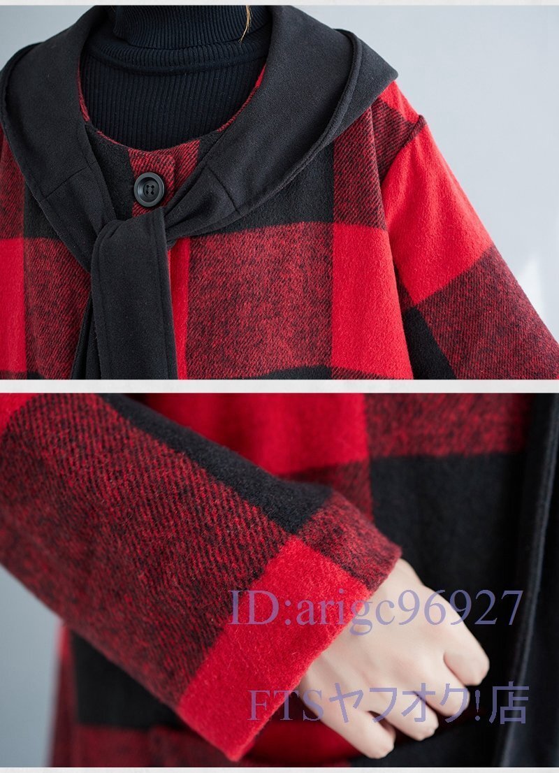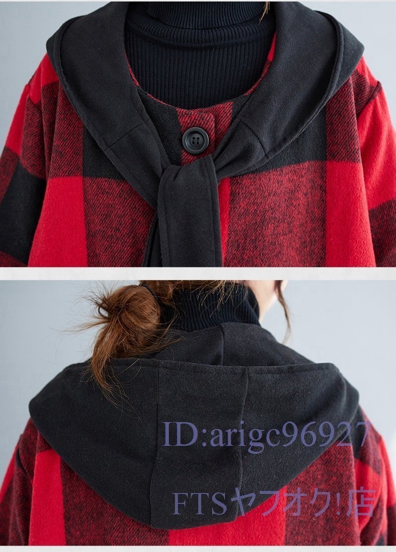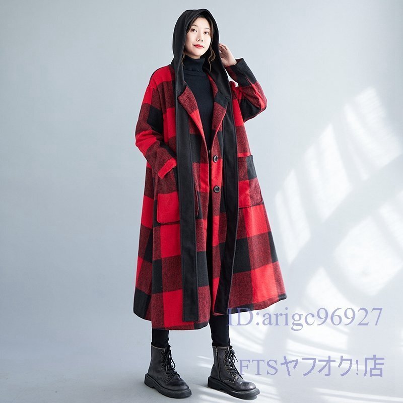 V793☆新品XLサイズ■レディースラシャコート 上質 防寒 フード付き ロングコート 秋冬 アウター チェック柄 大きいサイズ