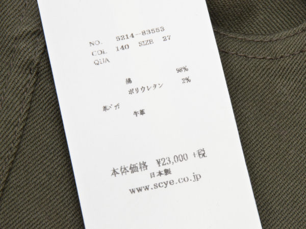 | 5214-83553 サイベーシックス SCYE BASICS パンツ | |||||||||||||||