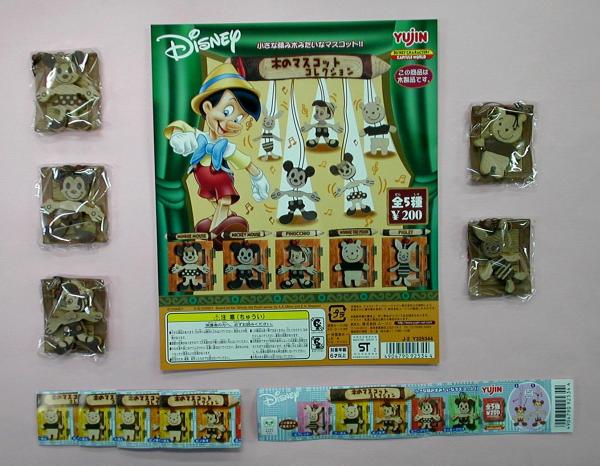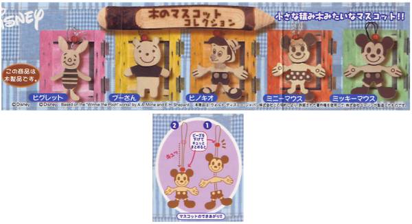 ガチャポンDisneyミッキーくまのプーさん 木のマスコット全5種