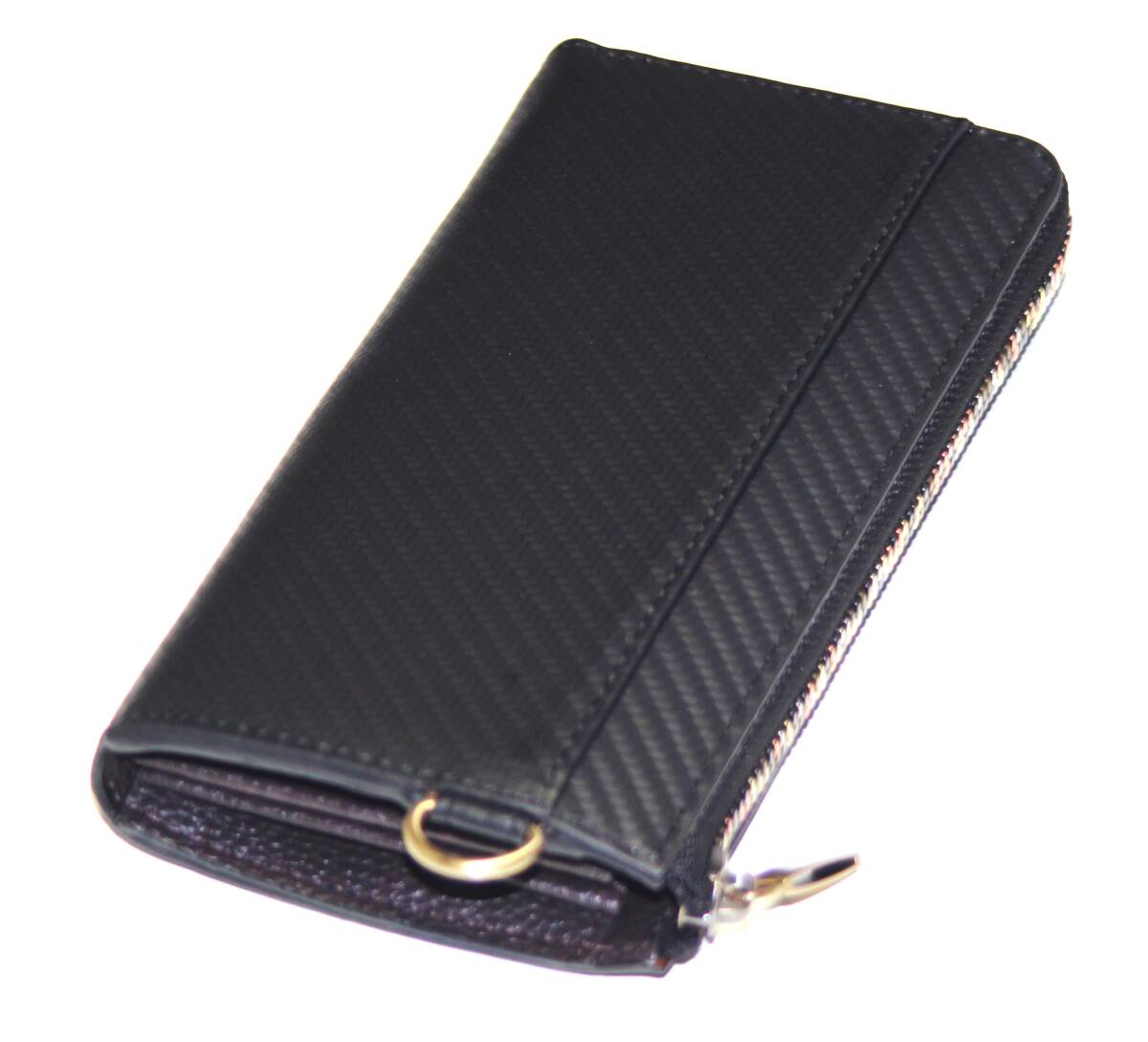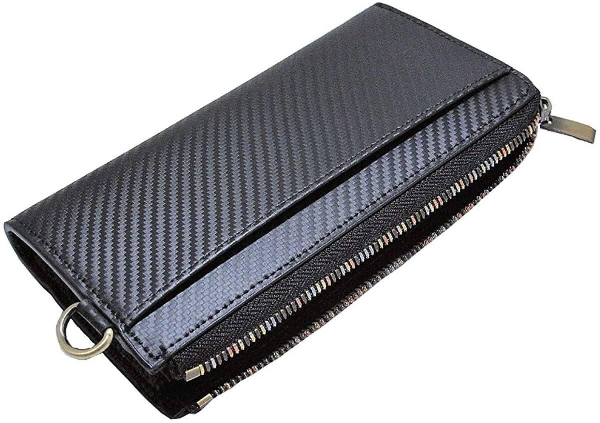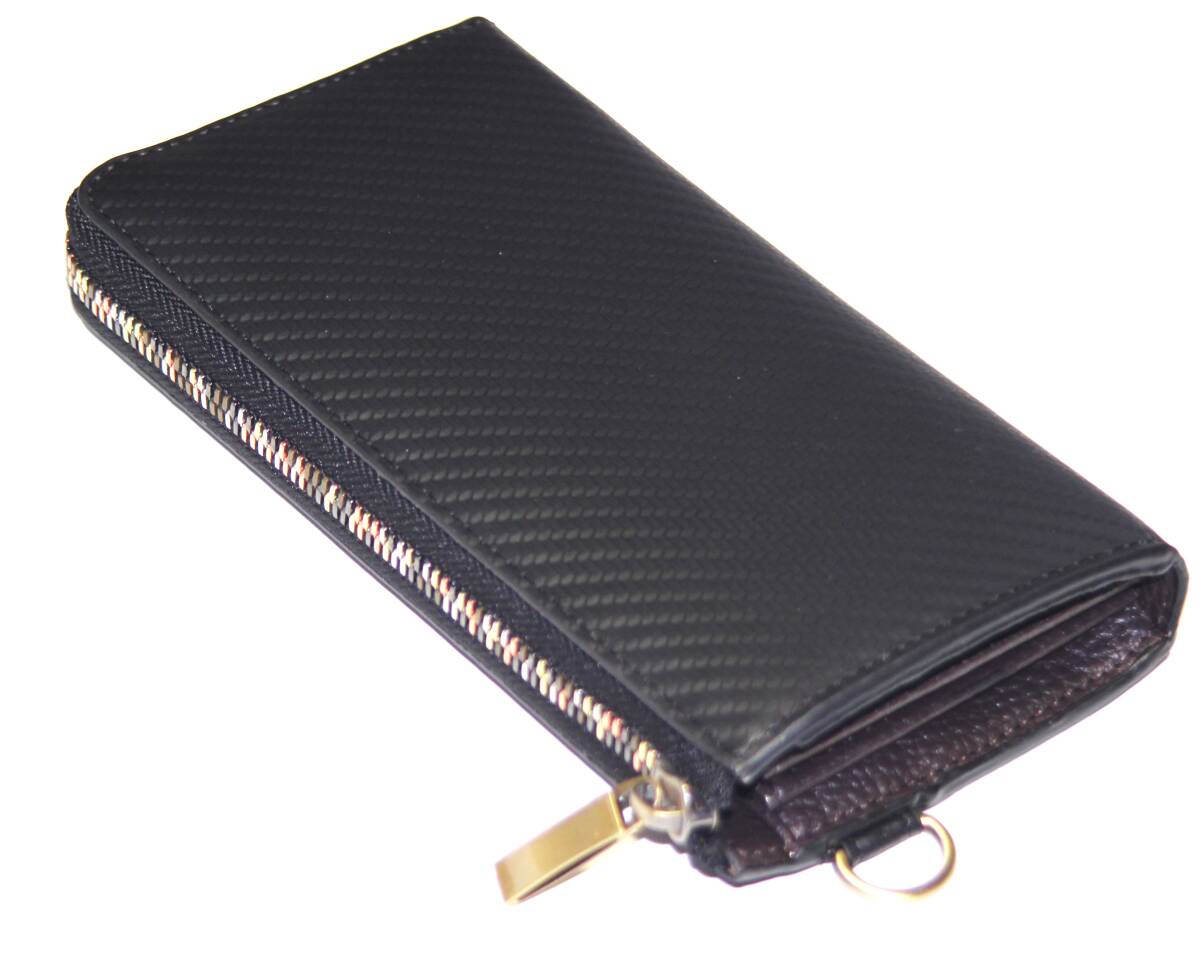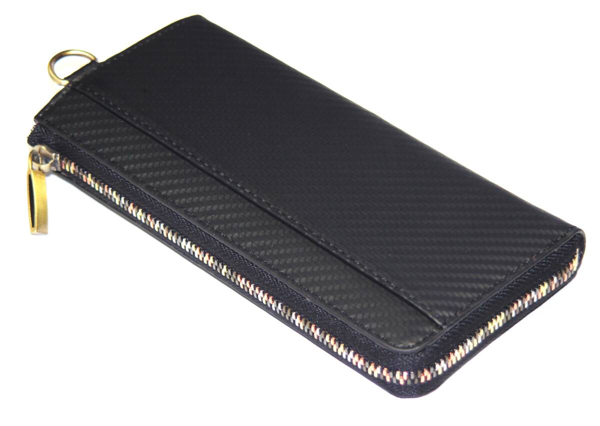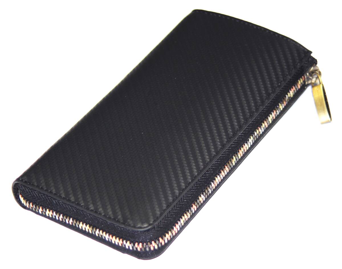 【ブラックフライデータイムセール】【送料込み】【限定】【新品】【税込み】牛革カーボンレザー☆男女兼用☆L字ラウンドロングウォレット