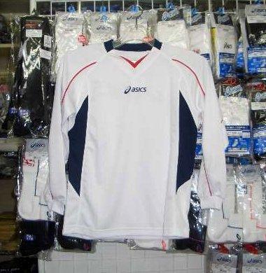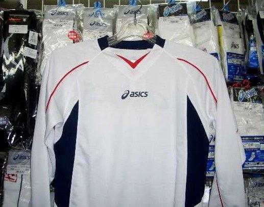 アシックス XS6224長袖ジュニアシャツ 白×紺 ホワイト×ネイビー 160cm asics キッズ 子供 新品 レトロ 即決価格/