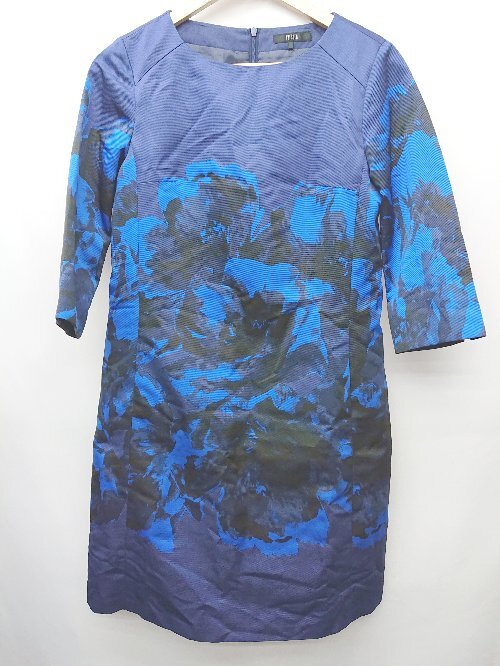 ◇ ivisuto イヴィスト 七分袖 ミニ丈 ワンピース サイズ40 ネイビー マルチ レディース P