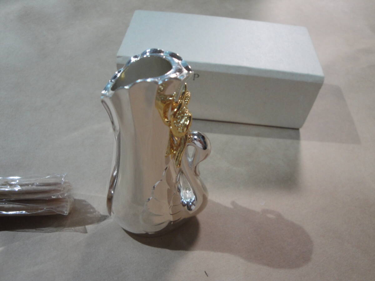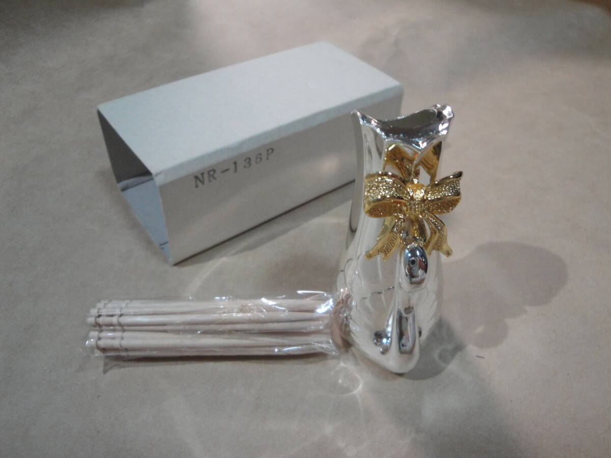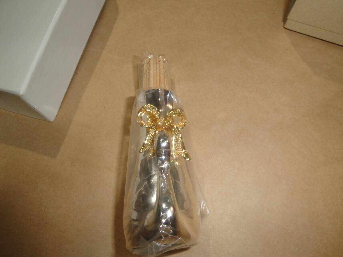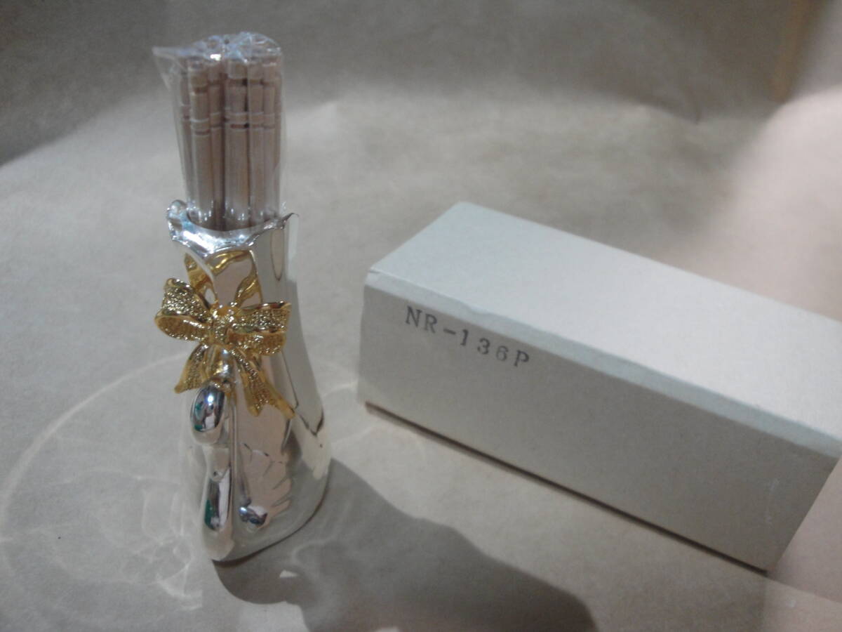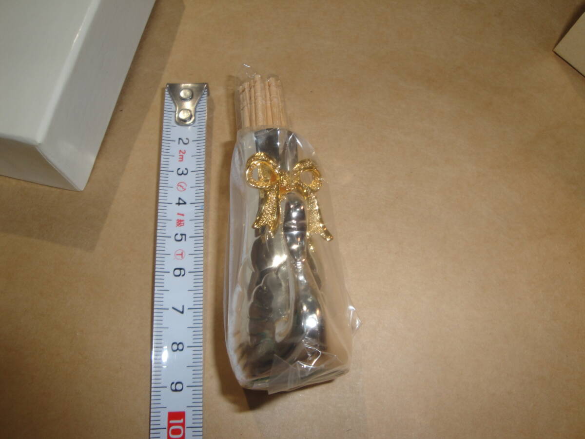 ☆金色系リボン付《シルバー色系金属製:楊枝入(楊枝付き・サイズ約:6.2×3.6×2.8cm》☆送料390円 インテリア置物 食卓 ようじ 収集趣味