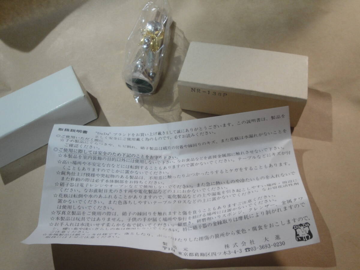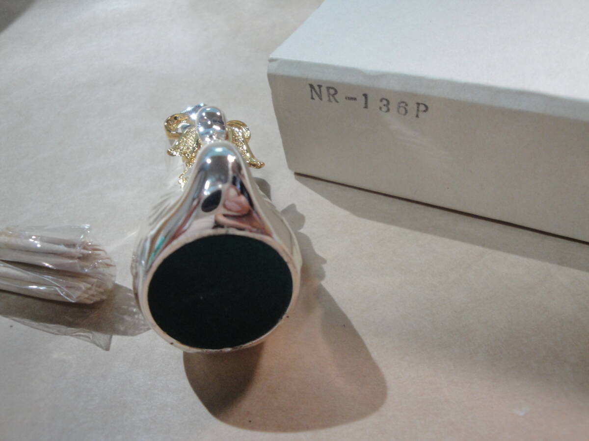 ☆金色系リボン付《シルバー色系金属製:楊枝入(楊枝付き・サイズ約:6.2×3.6×2.8cm》☆です。DaDaブランド。大進製造元。重さ約75グラム。私見ですが、長期保管の未使用品と思われます。写真のものがすべてです写真で判断願います。あくまでも中古品ですので,新品同様なものをお求めの方・気になさる方のご入札はご遠慮願います。ノークレーム、ノーリターンでお願いいたします。送料は定形外(保証なし)で390円です。発送は原則週2回です。お手数をおかけしますがご入札の前に、必ずフォローリスト(自己紹介欄)と当該記載内容のご確認をお願いいたします(2日以上連絡がつかないときも,お手数をおかけしますがフォローリスト(自己紹介欄)をご覧の上ご連絡をお願いいたします)。中古品でございますのでノークレームでお願いいたします。問題発生時の対応につきましては、誠意をもって対応させていただきます。郵便局の定形外には、保証はありませんので保証の必要な場合はゆうパックをご利用願います。メールをいただければ5日程度の取置き(同梱)はOKですのでぜひご利用ください。落札後7日以上連絡が取れないときは自動的にキャンセルさせていただきます。(注)①迅速に対応するため、“「取引ナビ」:取引メッセージ”でお願いいたします。②万一の定形外商品未着に関する責任は負いませんので確実な配達のためゆうパックをお勧めいたします。③ゆうパック(着払いの対応はいたしません)ご利用の場合、送料は郵便局への持込み割引を含み一切割引の無い料金とさせていただきます。④状態の判断はあくまでの私見ですのでご理解願います。⑤評価の悪いが5個以上の方、新規の方は、お取引を確実にしていただける旨ご連絡ください。ご連絡のない場合は削除させていただきます。⑥ご入札後のキャンセルはできませんので十分に注意してご入札に参加願います。⑦レターパック対応の場合は、レターパック代に50円をプラスとさせていただきます。⑧領収書の発行はできません万一、落札品が欠品・不具合で取引出来ない場合は,誠に申し訳ありません。実費(ご落札金額、送料、振込手数料)のみにて対応させていただきます。⑩ゆうパック(着払いの対応はいたしません)ご利用の場合、請求送料は郵便局への持込み割引を含み一切割引の無い料金とさせていただきます(実際の発送料金とは、120円の差があります)。【必ず自己紹介をお読みください。対応や発送できない期間などご案内しております】