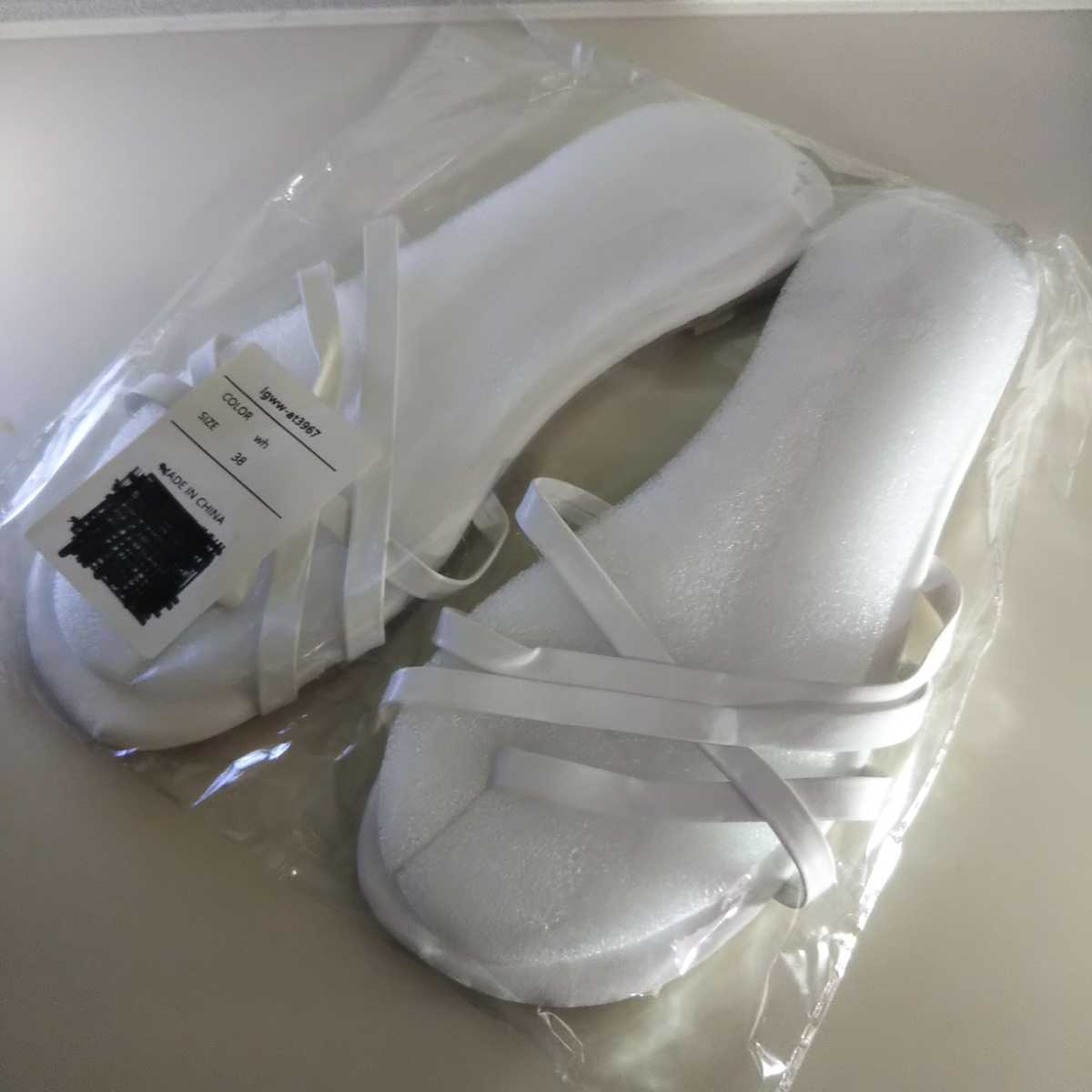 匿名/送料無料 【未使用・未開封】クロスストラップ フラットサンダル ペッタンコサンダル 白 サイズ37