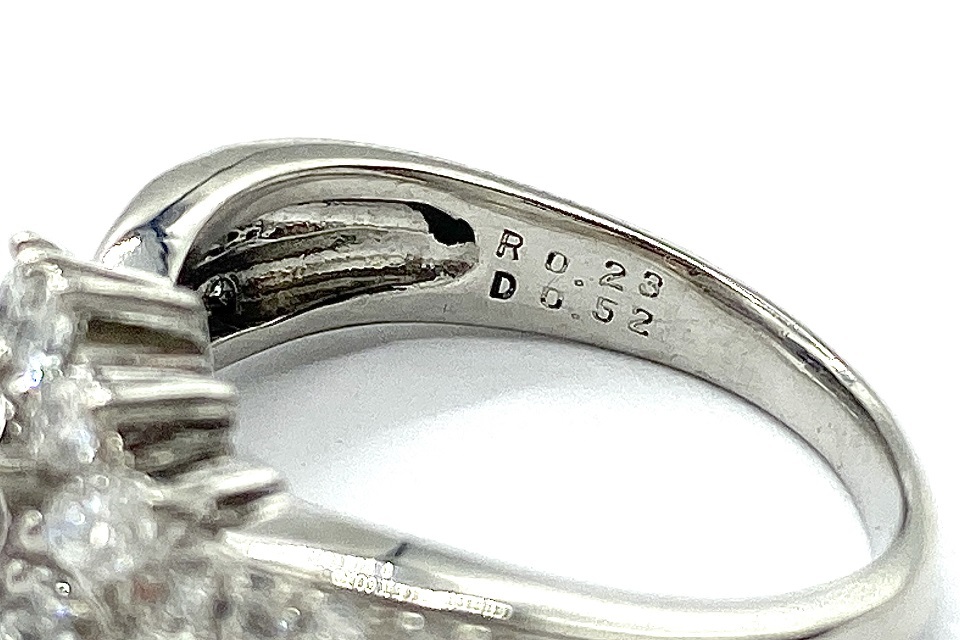 仕様 | R=0.23ct D=0.52ct ♯8号 主石サイズ3.5×2.7mm 寸法 9.2×10.0mm 6.4g |