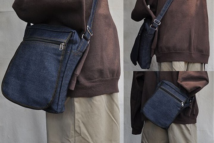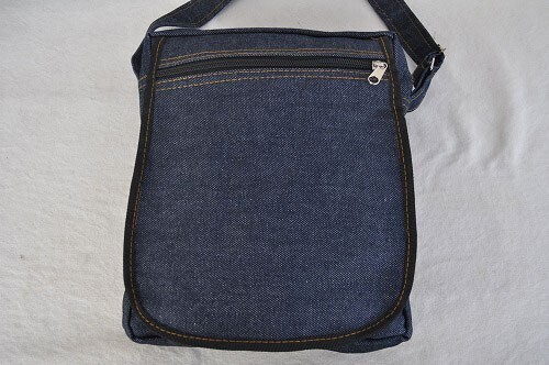 デニムミディアムショルダーバッグ 縦長タイプ ポケット多い ニューデニム 商品 ハンドメイド