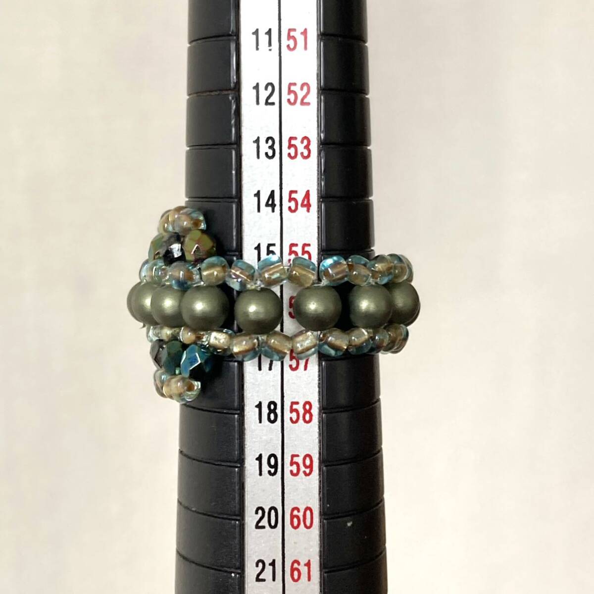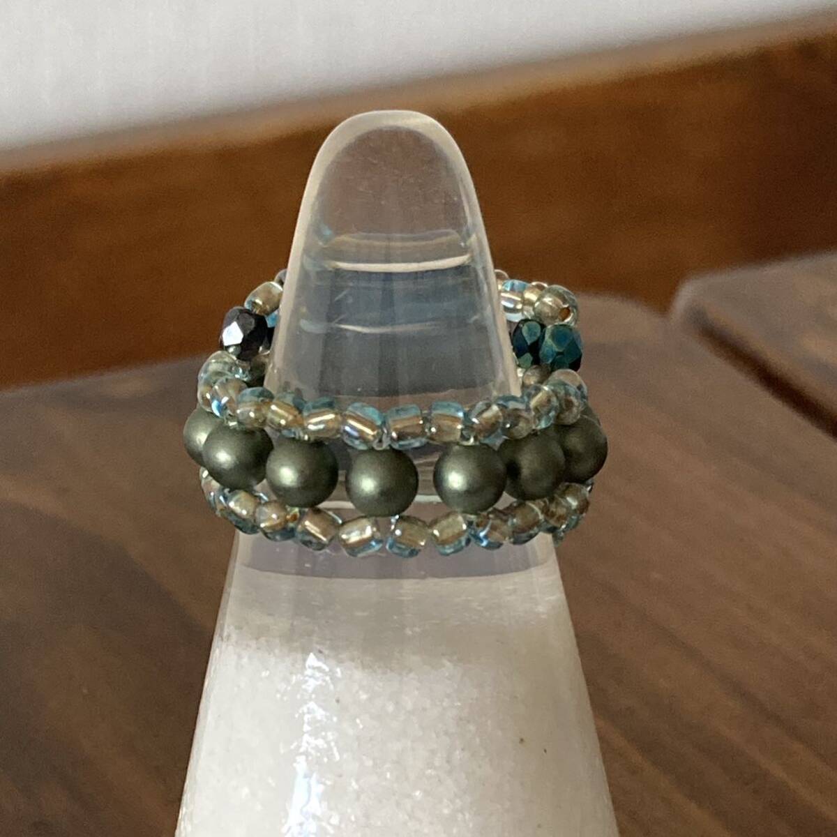 15-17号 ビーズ リング  グリーンのパールとチェコビーズの3段リング
