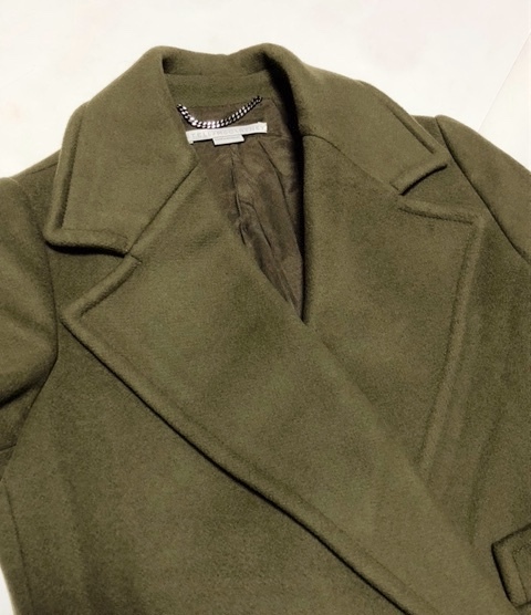 二点落札で送料無料! 【美品】ステラマッカートニー ウールメイン ダブル ショートチェスターコート 34 レディース カーキ S-M アウター