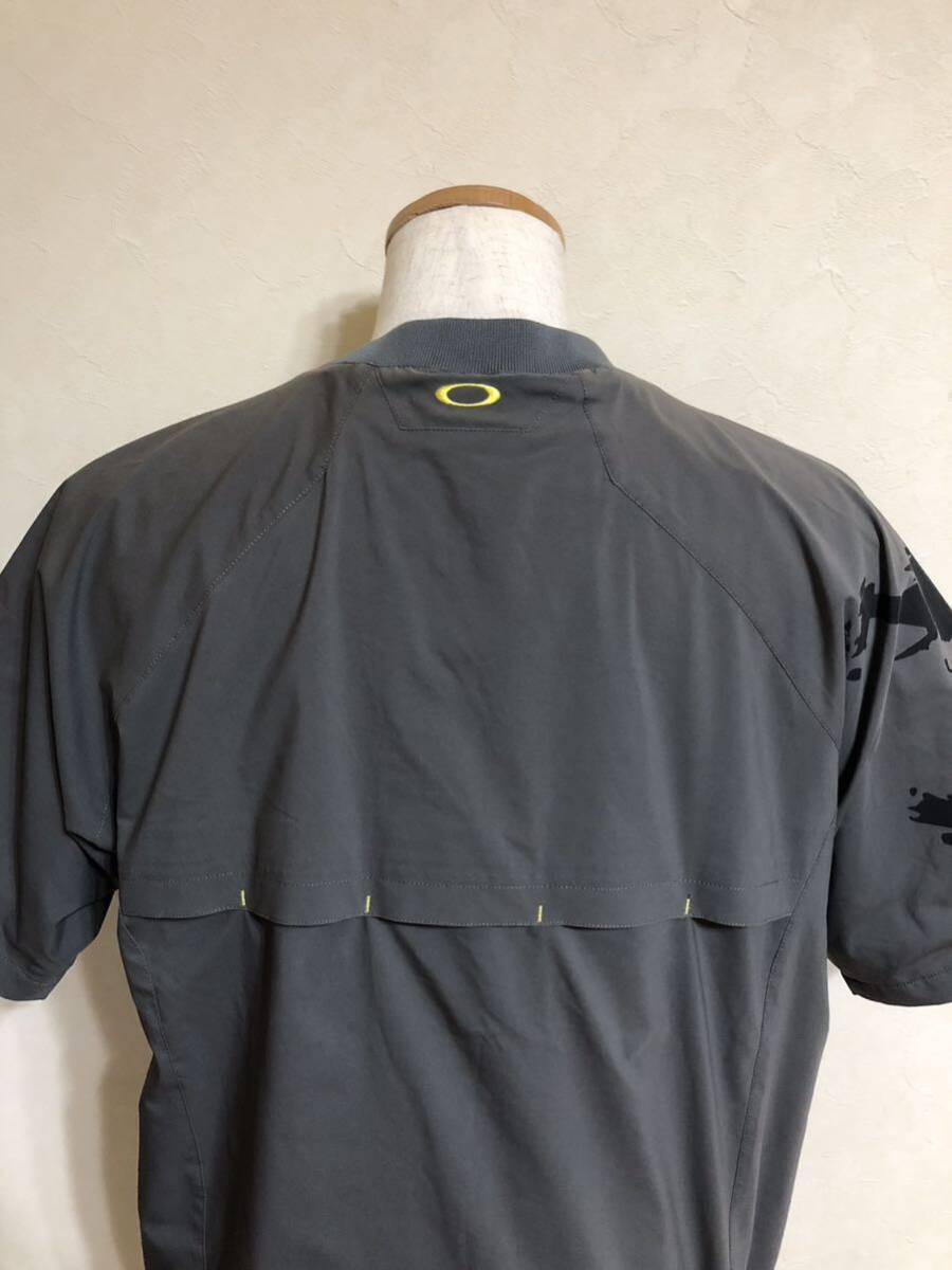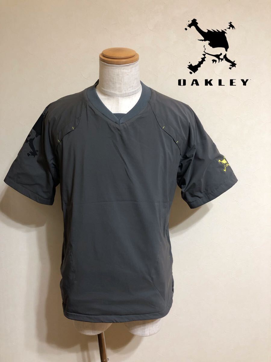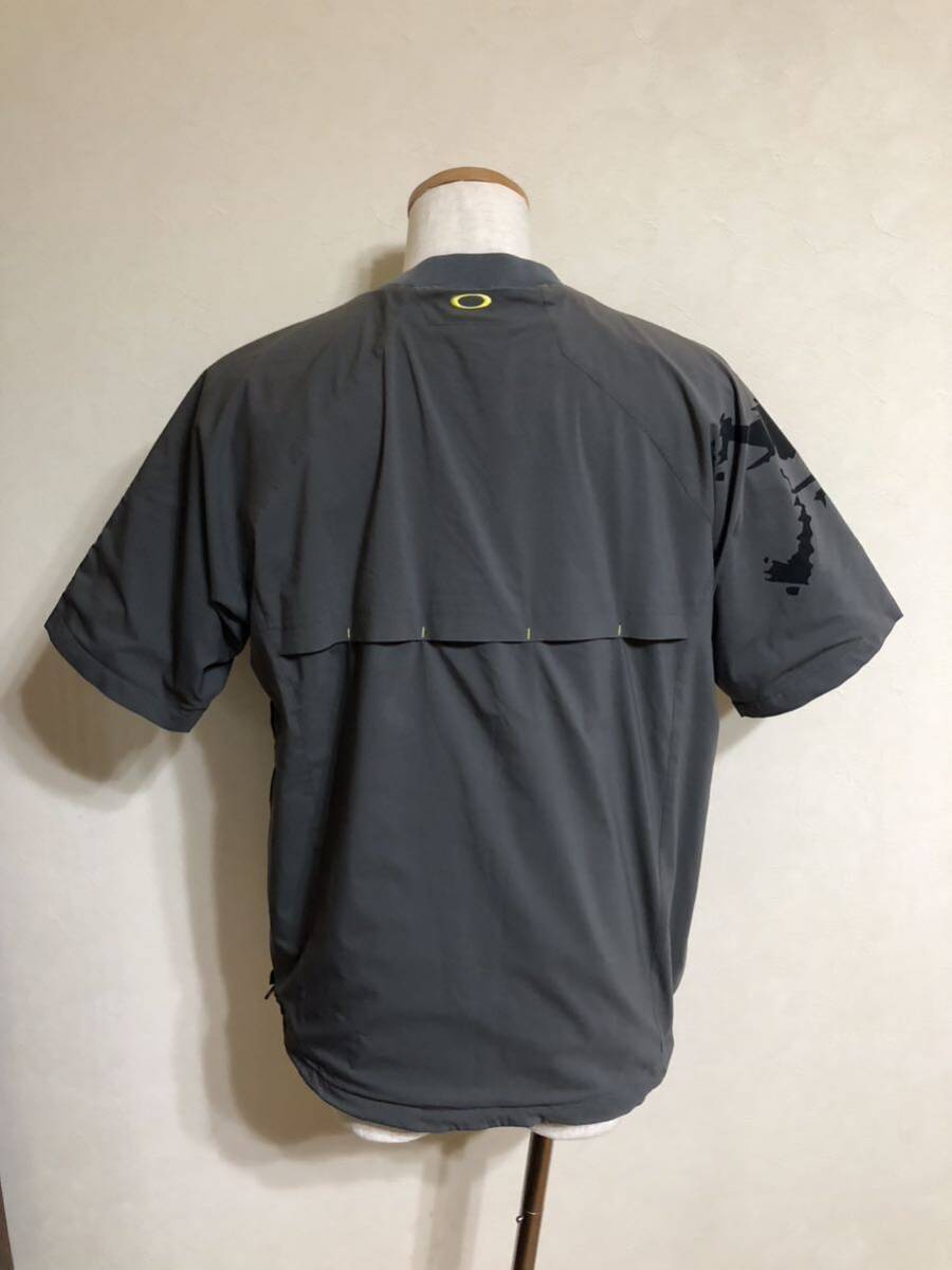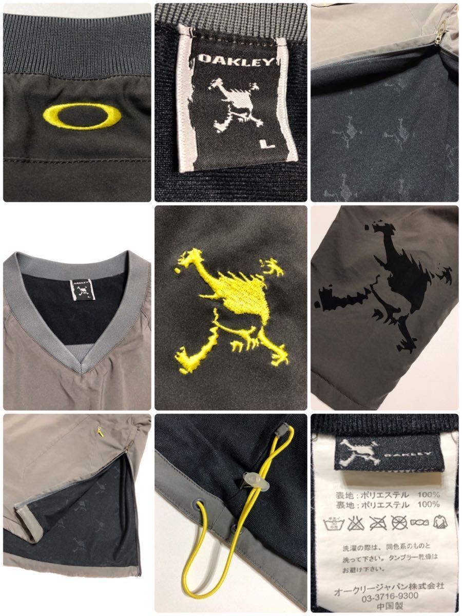 【美品】 OAKLEY GOLF オークリー ゴルフ Vネック ウインド プルオーバー ジャケット ビッグロゴ サイズL 半袖 チャコールグレー 裏起毛