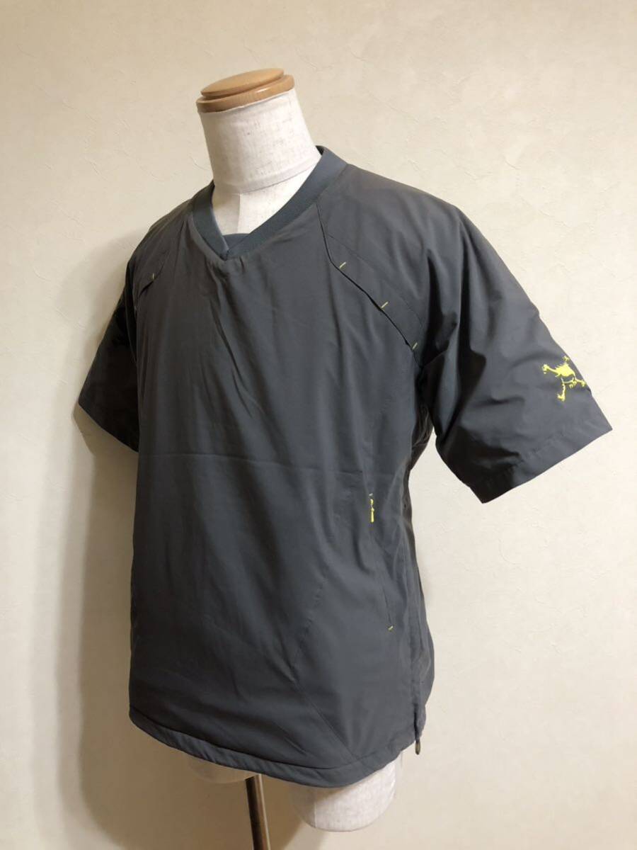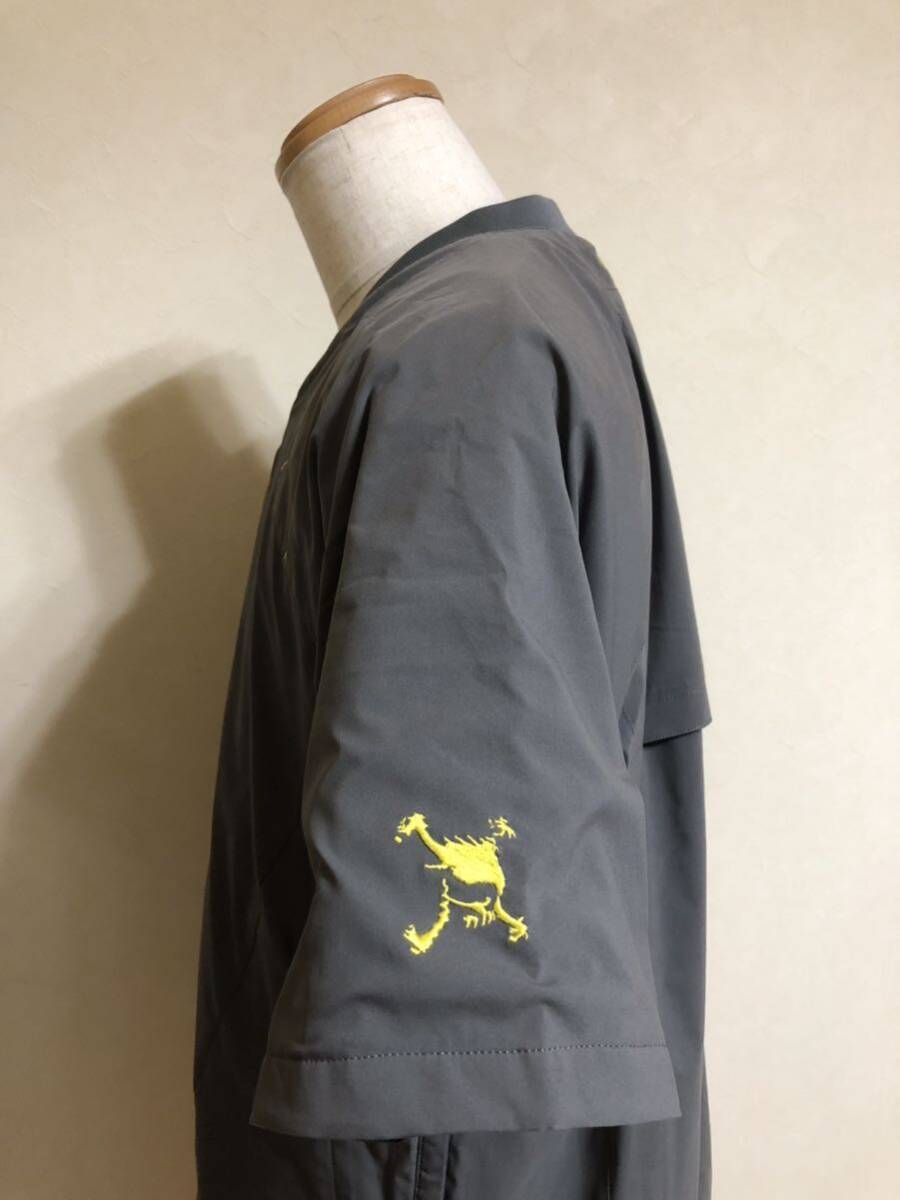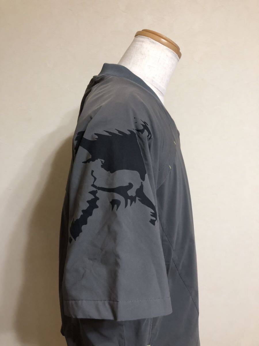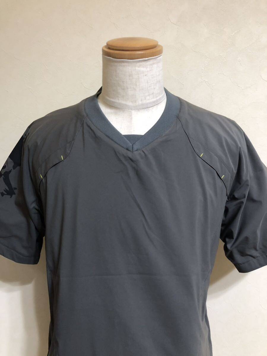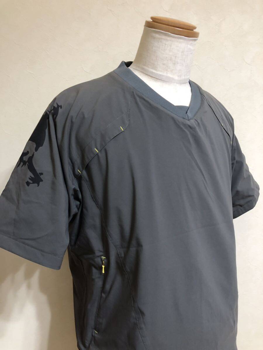 【美品】 OAKLEY GOLF オークリー ゴルフ Vネック ウインド プルオーバー ジャケット ビッグロゴ サイズL 半袖 チャコールグレー 裏起毛