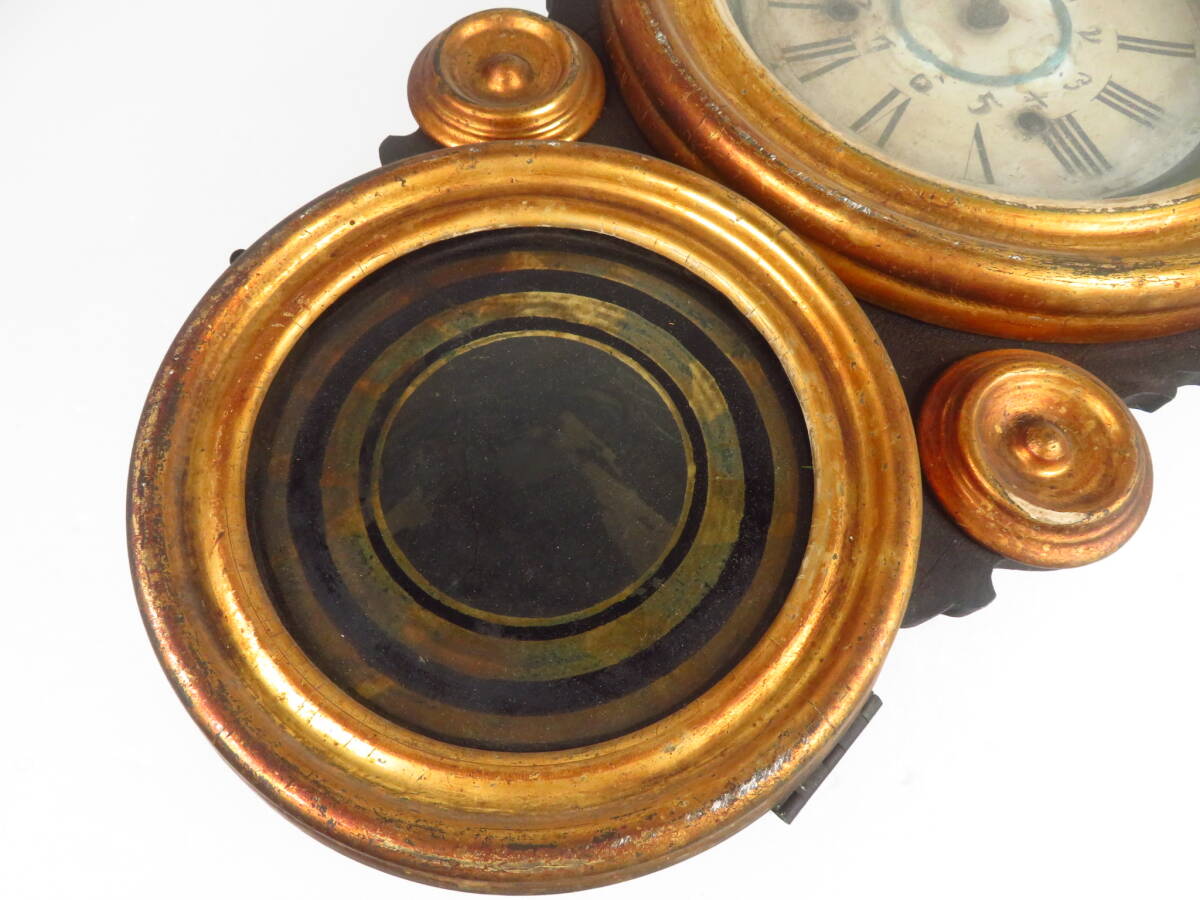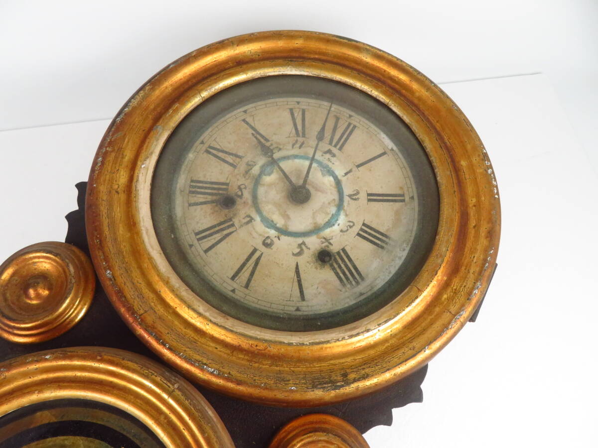 アンティーク【E.INGRAHAM イングラハム 掛時計 だるま時計】柱時計 四つ丸 金縁 振り子 ヴィンテージクロック アメリカ製 レトロ【918】 | ||