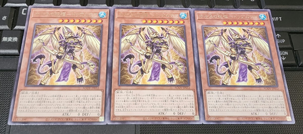 遊戯王 ホルスの祝福ードゥアムテフ AGOV 字レア 3枚セット 即決