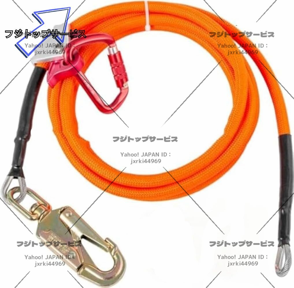 安全ロープ 伐採安全帯 直径1.6cm 長さ4.87m フリップラインキット 鋼線コア 柱上作業用/林業用安全帯