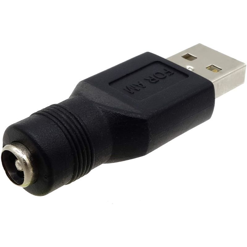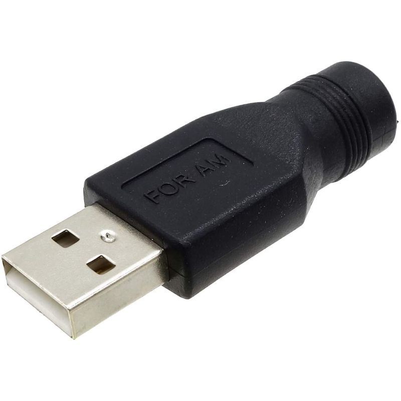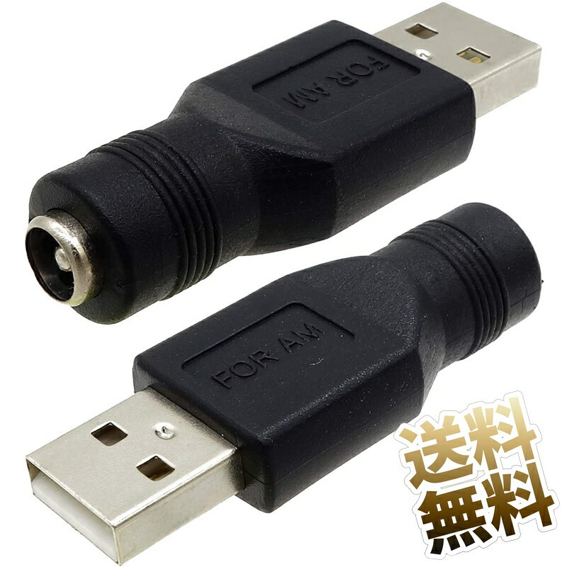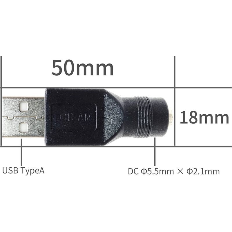 USB タイプA→DC 外Φ5.5mm × 内Φ2.1mm へ変換するアダプタです。