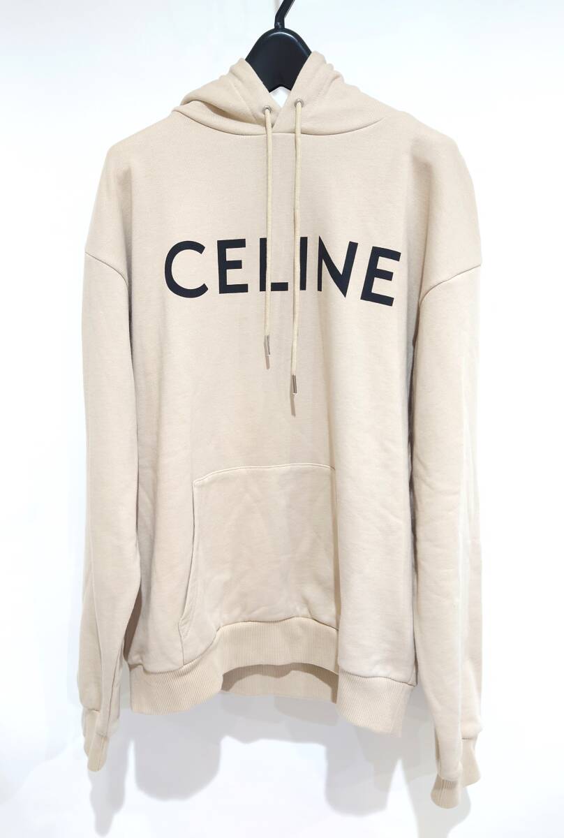 国内正規品 CELINE セリーヌ クラシックロゴ ルーズ プルオーバー パーカー フーディー S ベージュ Y-21330X