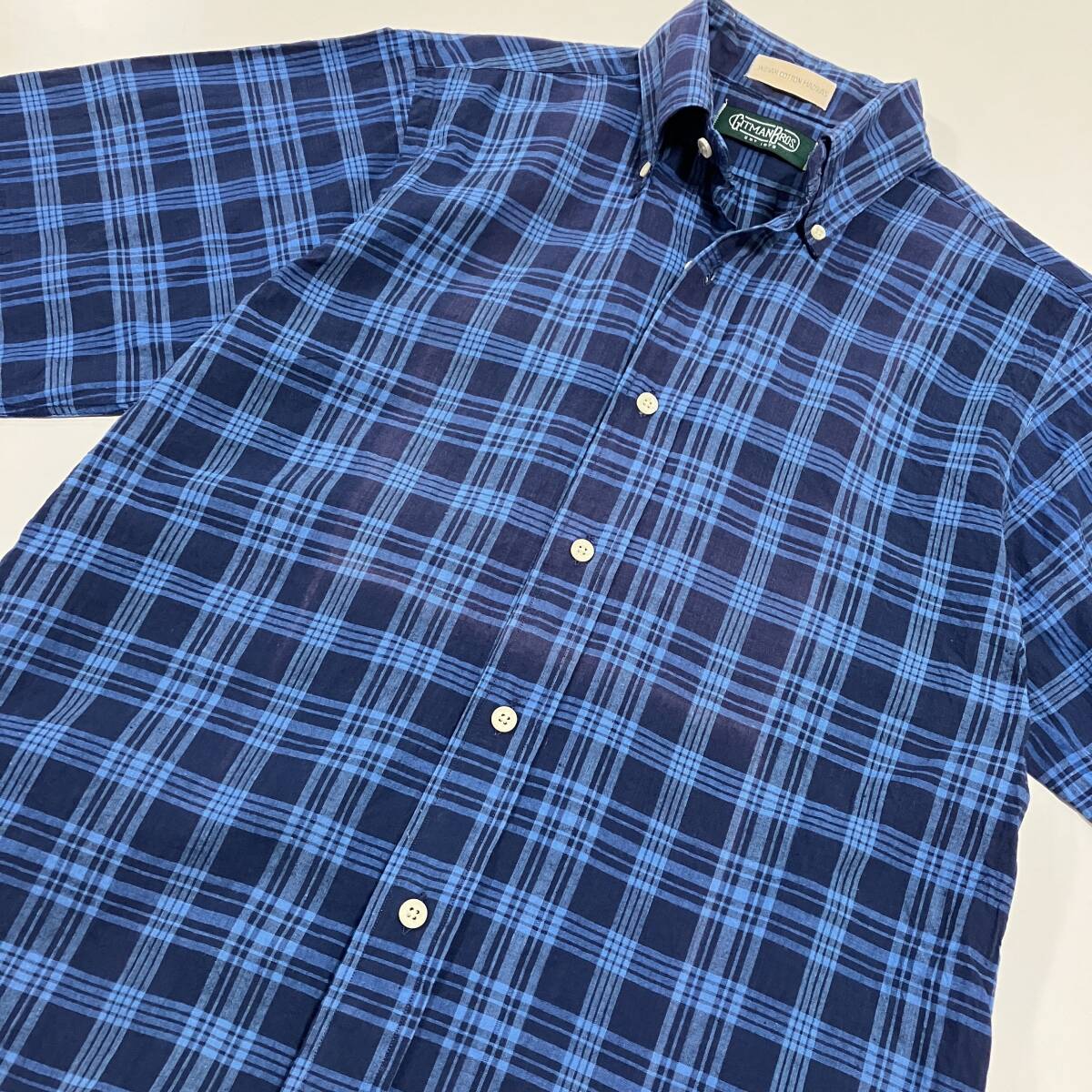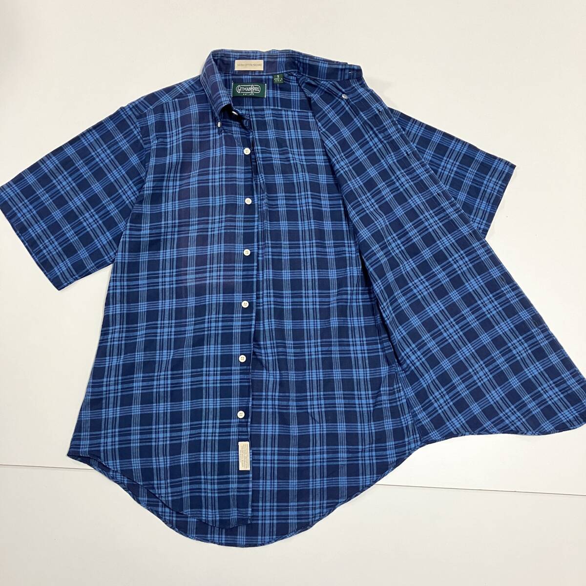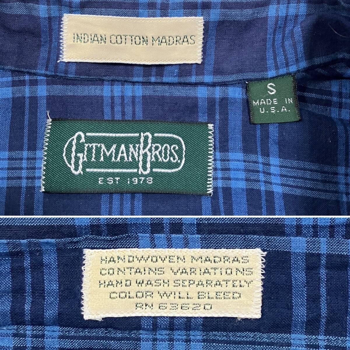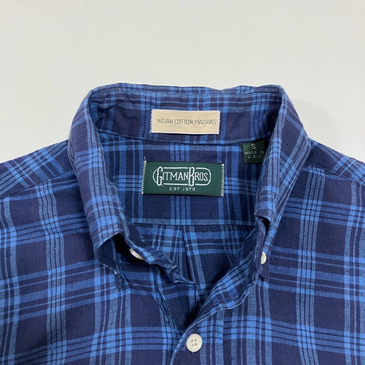 USA製 GITMAN BROS チェック ボタンダウン 半袖 シャツ Sサイズ 紺系 ギットマン ブラザーズ コットン 柄シャツ 4080274