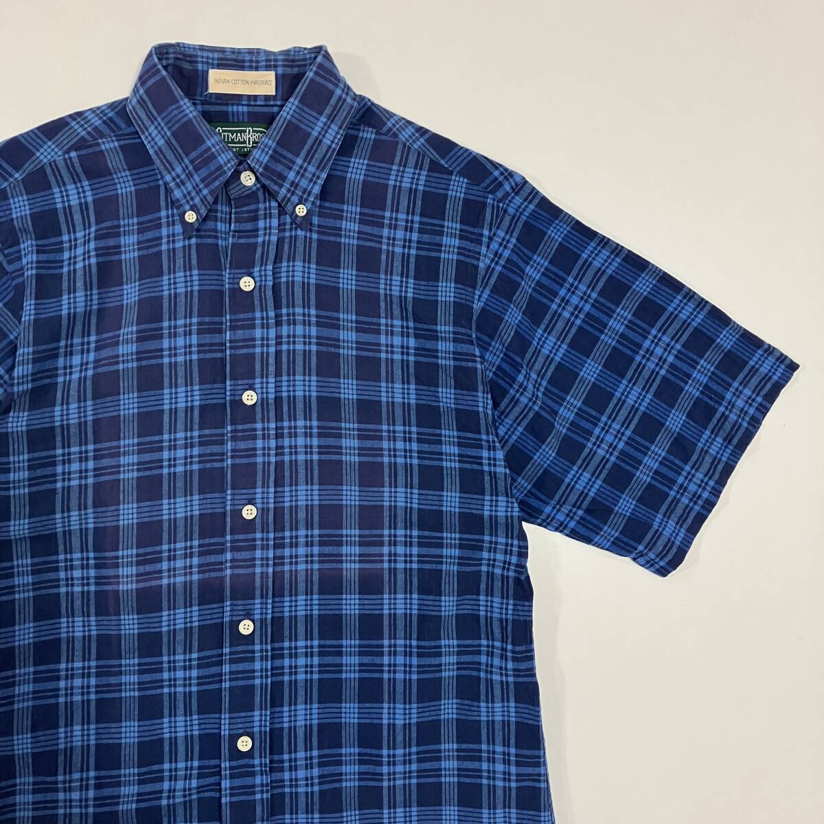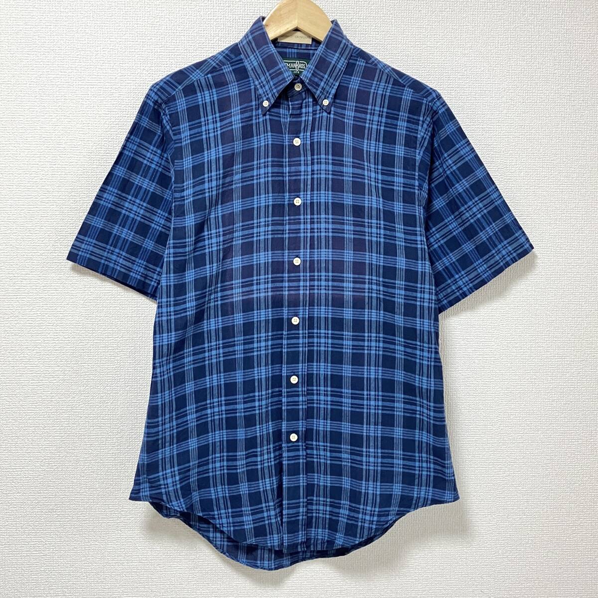 USA製 GITMAN BROS チェック ボタンダウン 半袖 シャツ ネイビー ブルー系
