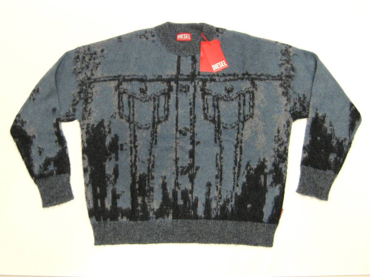 新品 直輸入 DIESEL Gジャン柄 モヘア混 クルーネック セーター イタリア製 ユルふわニット Lサイズ K-PATMOS A11214