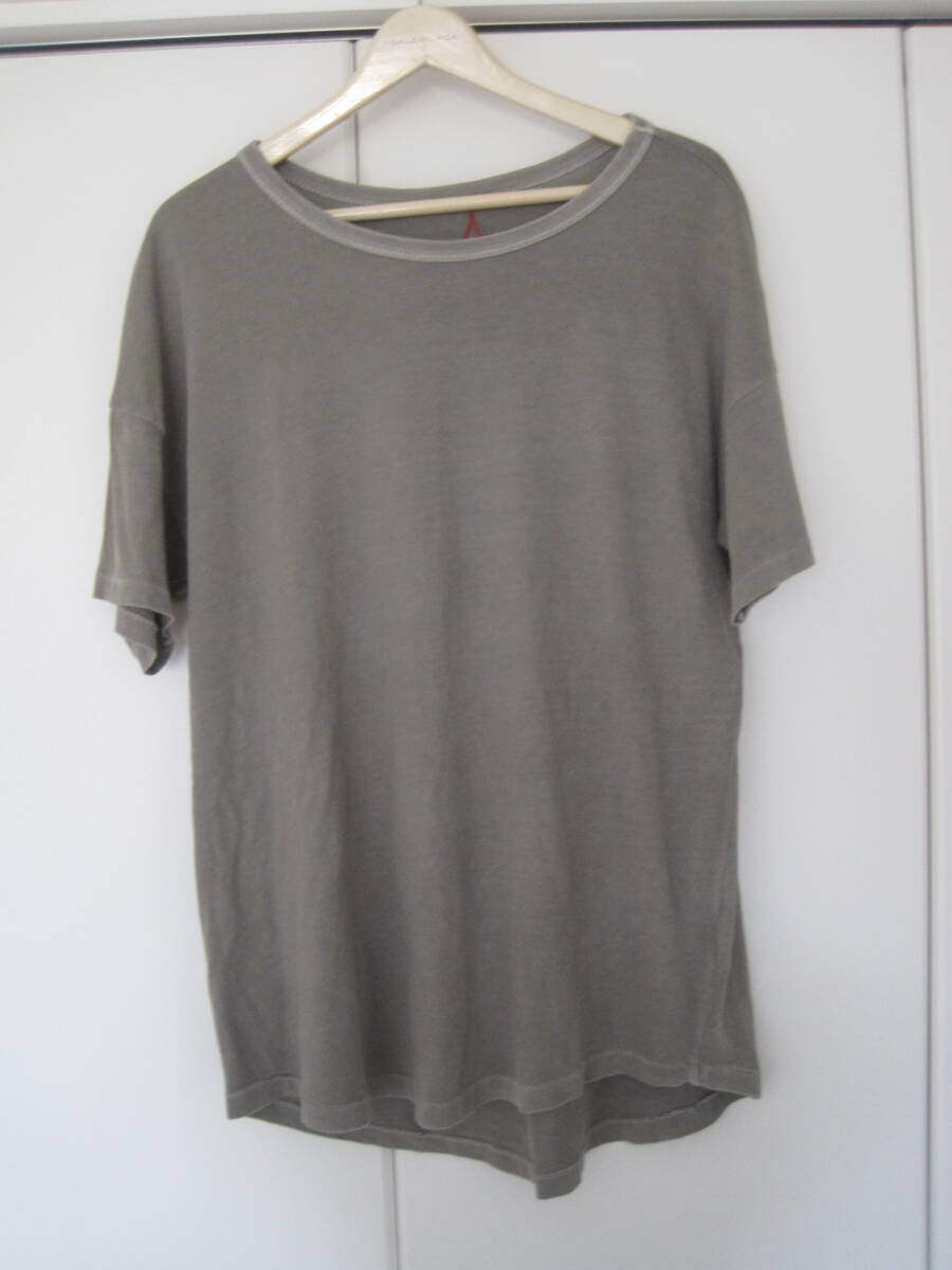IENA購入 アメリカ製 LE BON SHOPPE ドロップショルダー 裾ラウンドTシャツ リラックスシルエットになります。着用感がありますが、特に目立つ傷、汚れはありません。裾がラウンドしていて後ろ着丈の方が前より長めです。カラーはカーキグレー、サイズはS、綿100%、アメリカ製です。肩幅60cm、袖丈13cm、身幅52cm、後ろ着丈68cmです。素人の採寸ですので若干の誤差、商品状態はご了承ください。 落札後は、ノークレーム、ノーリターン、ノーキャンセルでお願いします。 発送方法は定形外かレターパックです。ほかにも色々出品していますので良かったらご覧ください。
