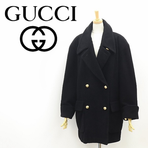 イタリア製◆GUCCI グッチ アンゴラ&ウール メタルボタン ダブル コート 黒 ブラック 42 | |