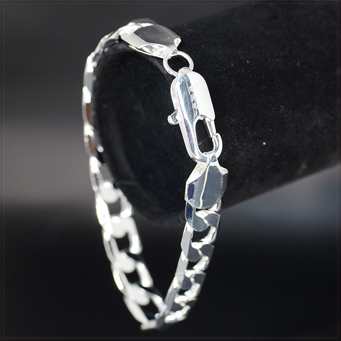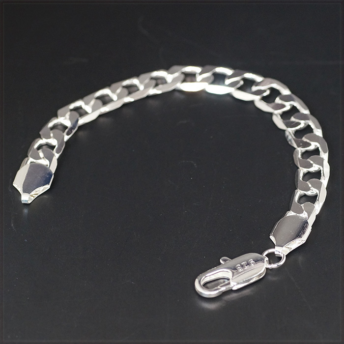 925 Sterling Silver Plated 6面カット オーバル 喜平 チェーン シルバー ブレスレット です。