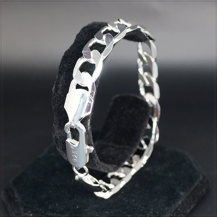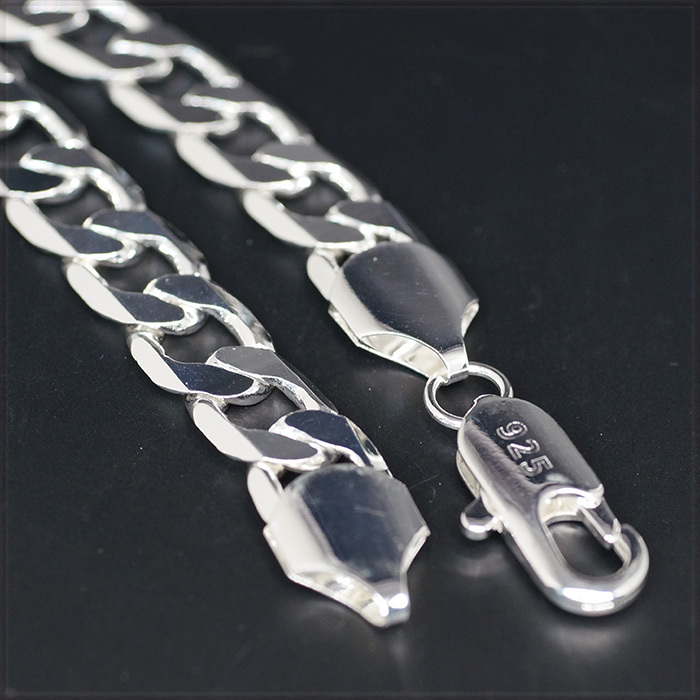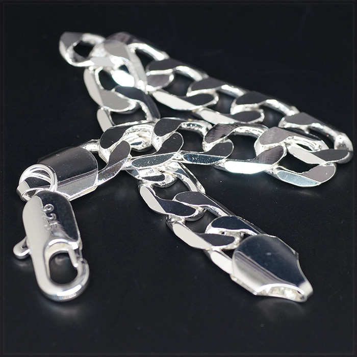 [BRACELET] 925 Sterling Silver Plated 6面カット オーバル 喜平 チェーン シルバー ブレスレット 12x225mm (27g)