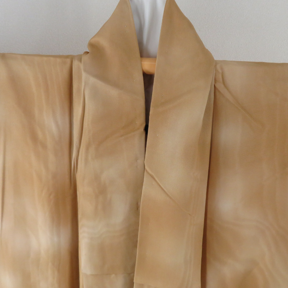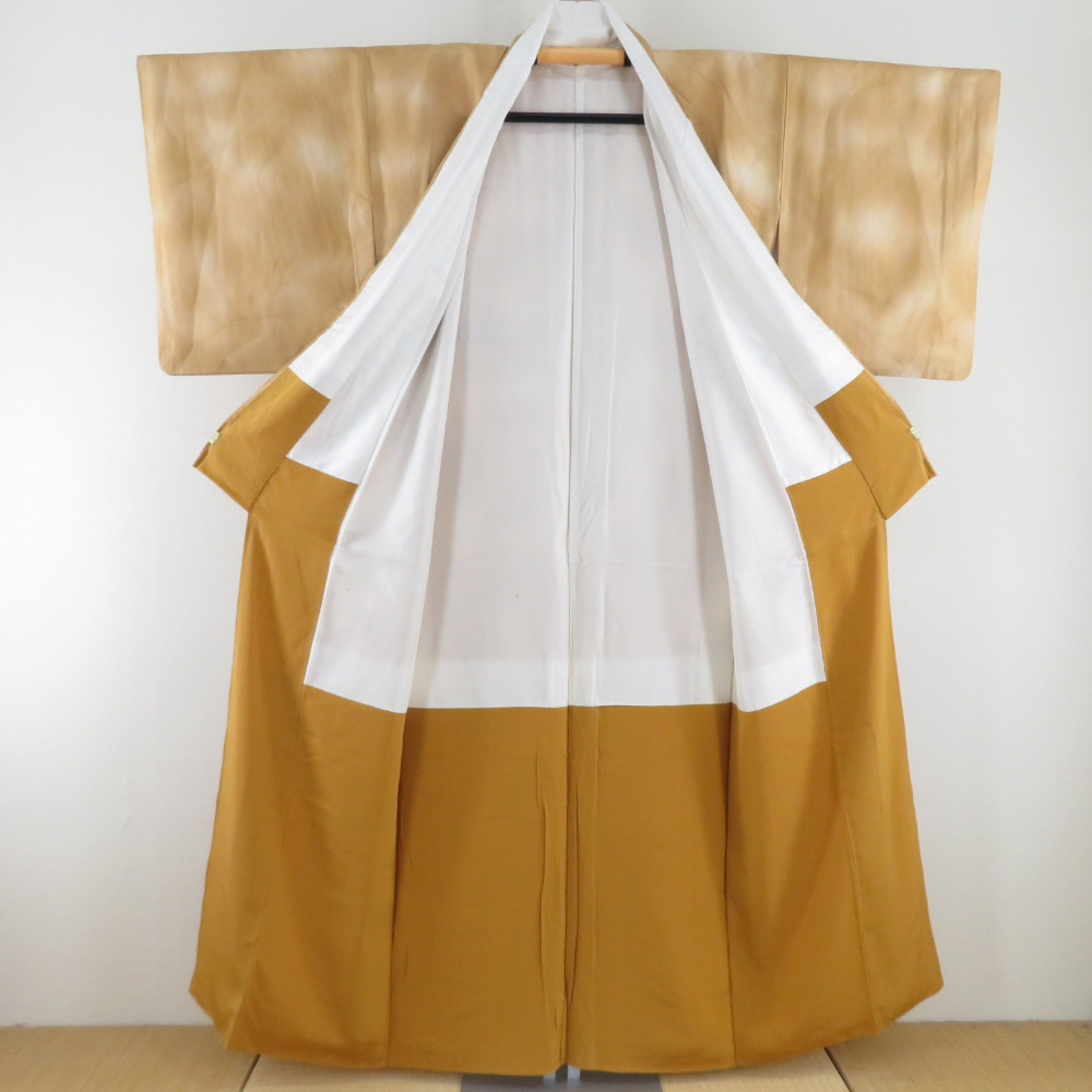 | 小紋 暈し文様 袷 広衿 黄土色 正絹 紋なし 仕立て上がり カジュアル着物 身丈152cm |