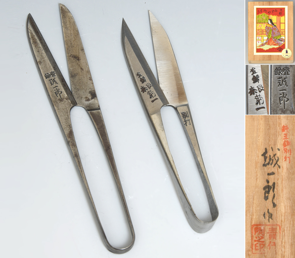 菊一文珠四郎包永 /誠一郎(作)糸切りはさみ 2個 鋏 はさみ 糸切鋏 和洋裁道具 みすや針桐箱入りセット付属 |