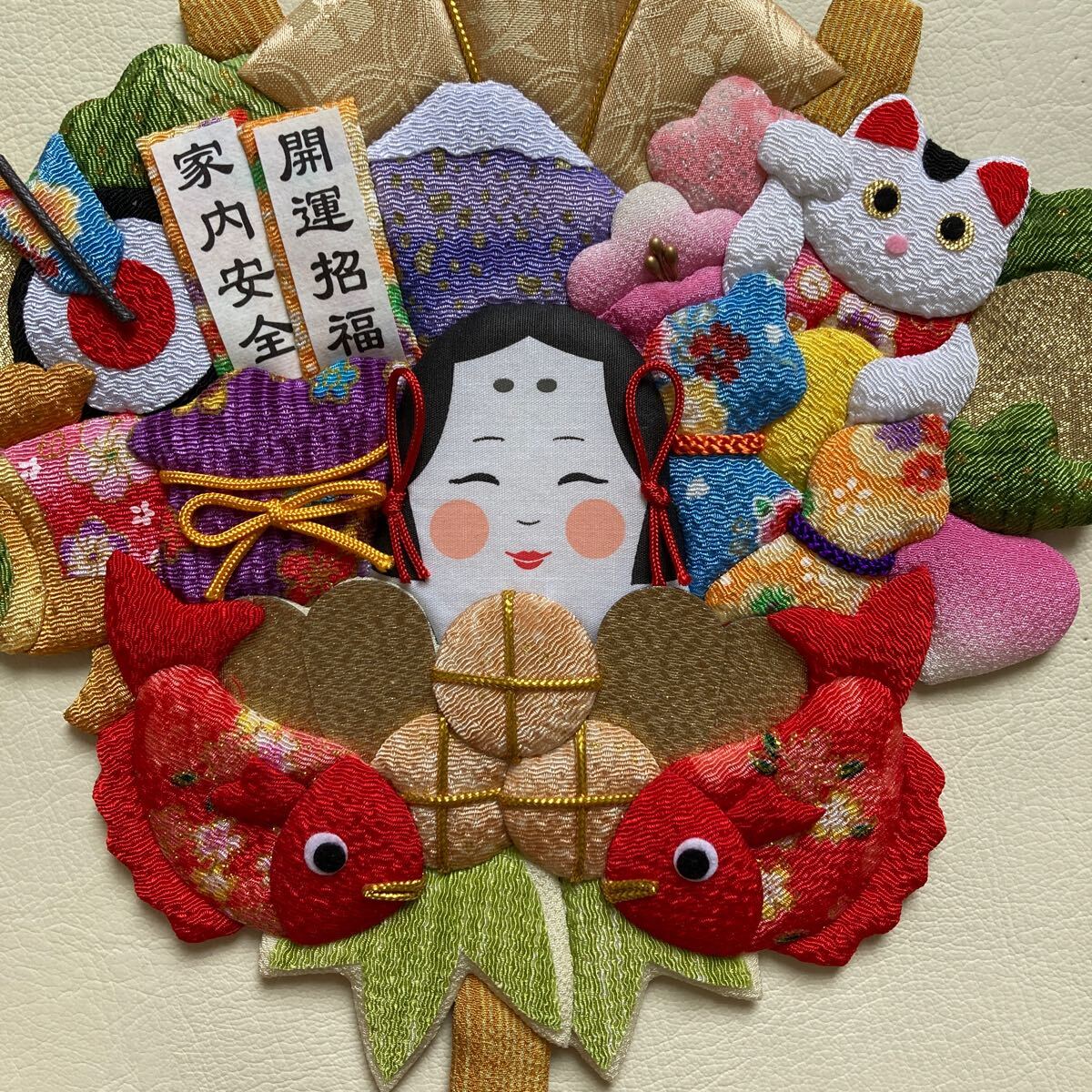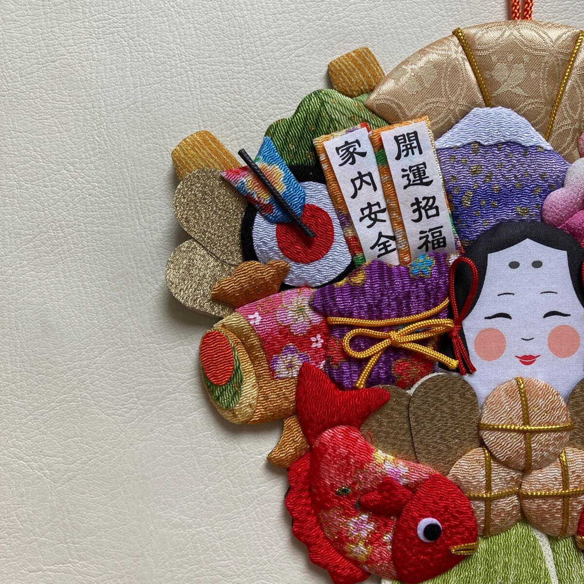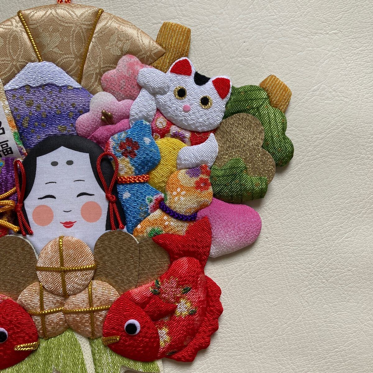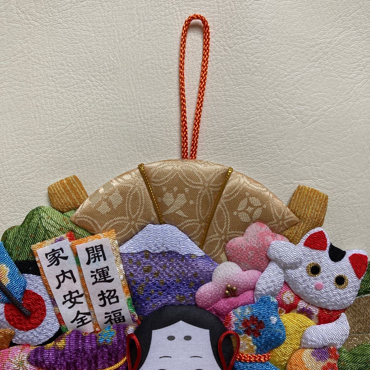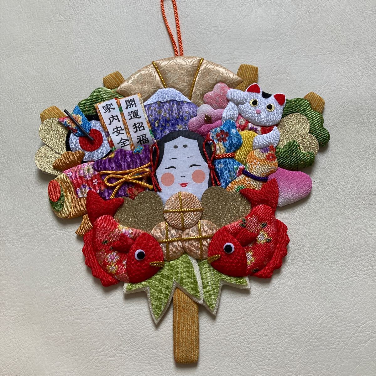 ☆押絵飾 迎福熊手 ふっくら押絵 縁起物 招き猫・鯛・富士山・金俵など 開運招福 ちりめん布☆