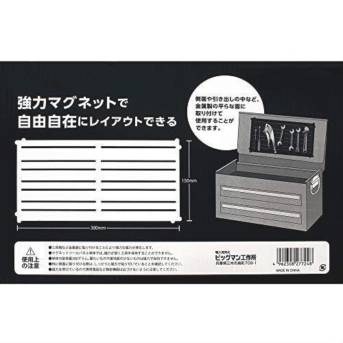 | ブランド:ビッグマン(Bigman) [特徴] ●強力マグネットの磁力によって工具等を取り付けることが出来るツールパネルです。 ●金属製の平らな面にマグネットで取り付けて使用しますので、金属製ツールキャビネットの側面や引き出しの中など自分好みに配置することが出来ます。 ●本商品単体では磁力が弱く、工具を保持することが出来ません。プレート裏面のマグネットで金属面へ設置することにより強力な磁力を発生し鉄製品を張り付けることができます。 ツ ... 特徴:金属製の平らな面に裏面のマグネットで設置することによって強力な磁力を発生し、工具など鉄製品を張り付けることが出来るツールパネルです。 用途:壁面での工具の収納に。工具キャビネットの引き出しの中の整理整頓に。 パネルサイズ:縦150mm×横300mm 耐荷重:300gです。重たいものや設置面の少ないものは磁力で保持出来ません。 | |||