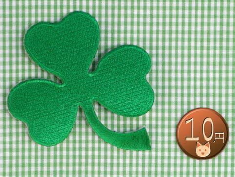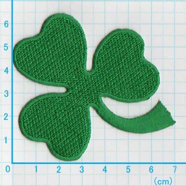 アイロンワッペン/刺繍/アップリケ/クローバー緑M/草花/四つ葉/ラッキー/植物