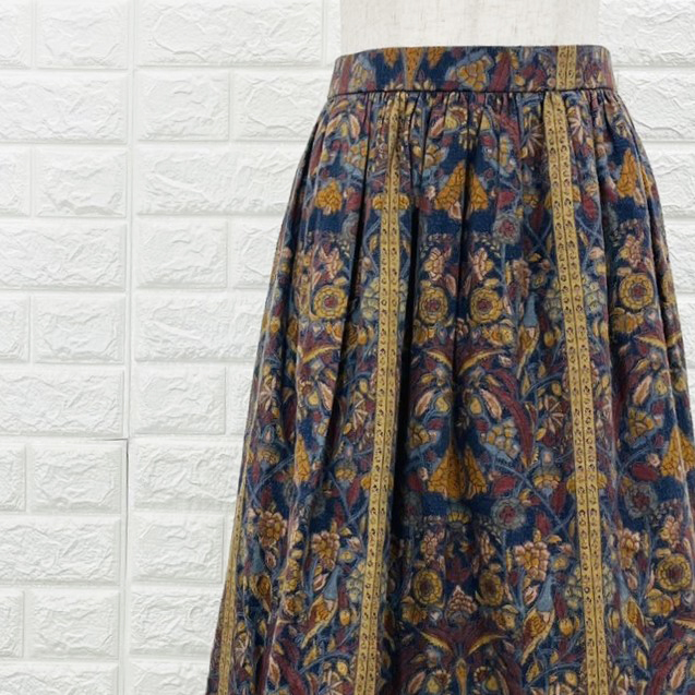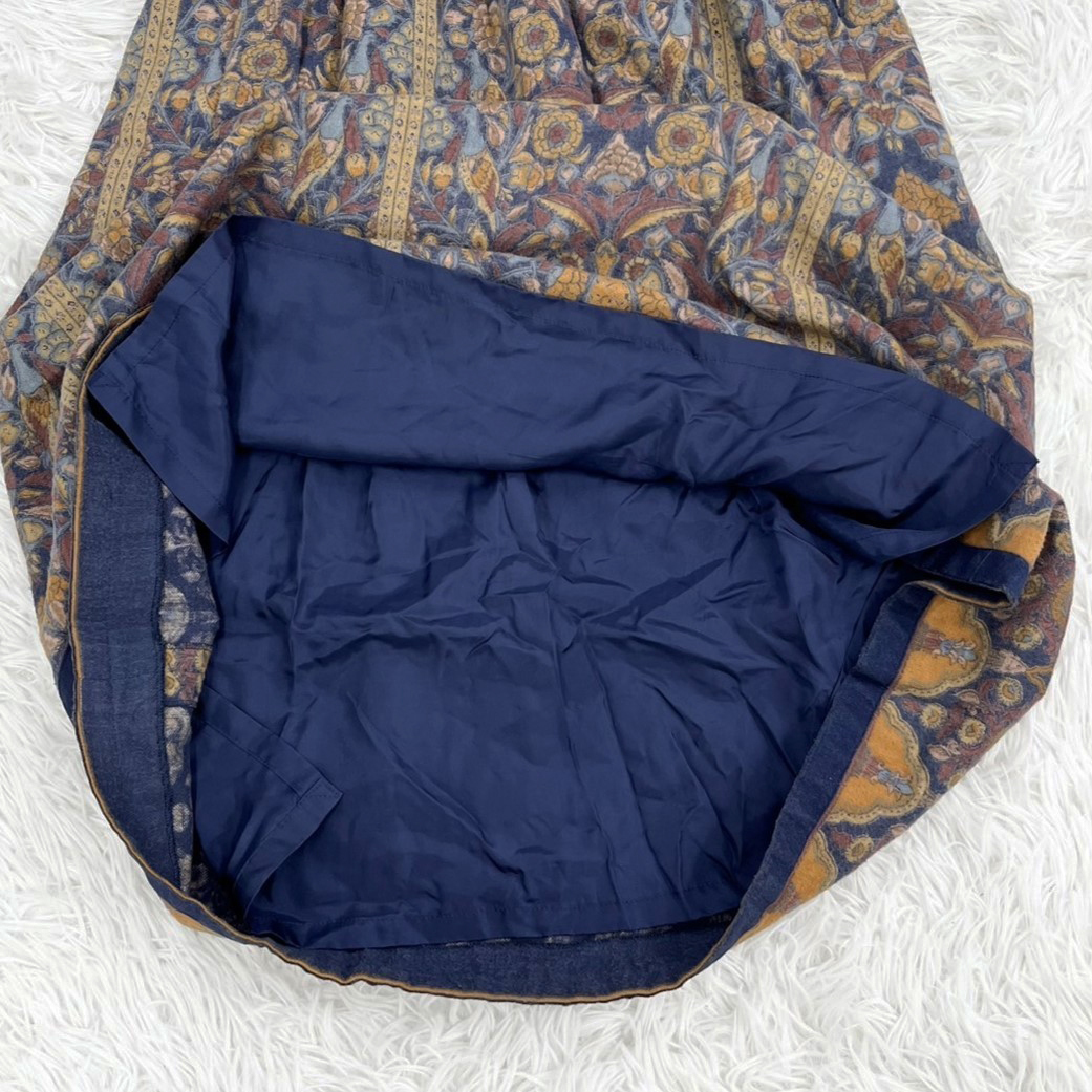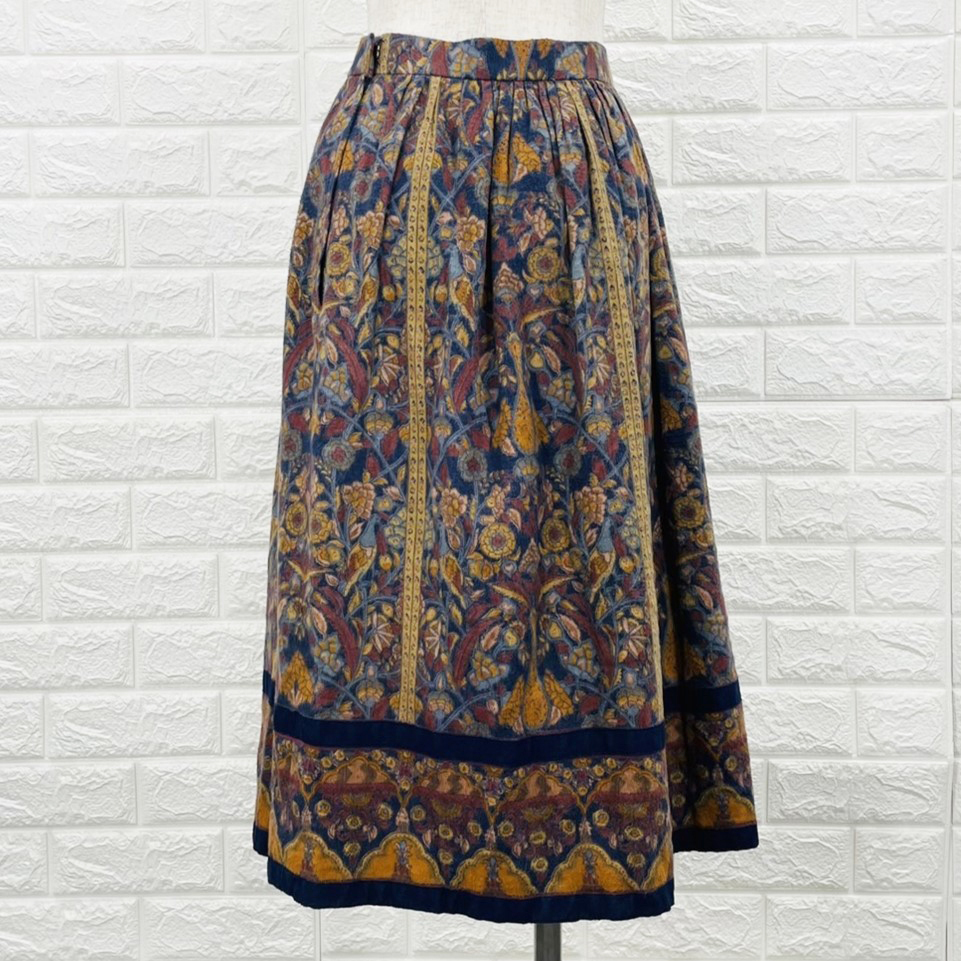 【A1406】 PARISHE パリシェ ギャザースカート フレア エスニック調 花柄 レディース マスタード×ネイビー カジュアル 9号 Mサイズ