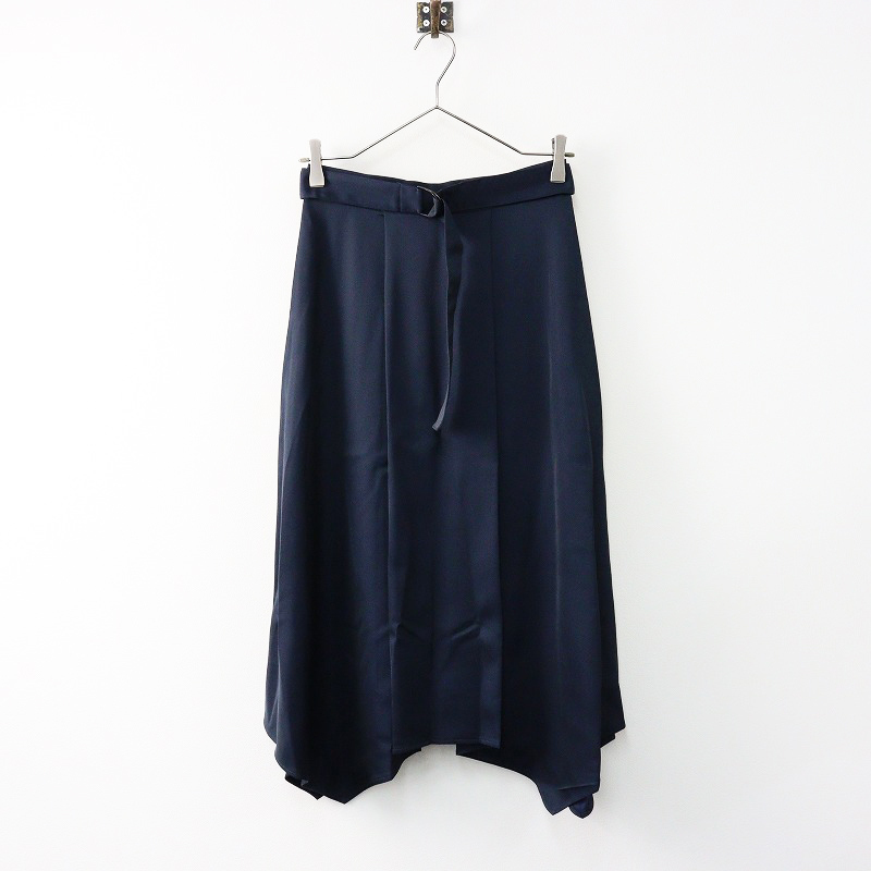 アナイ ANAYI エアリーサテンイレギュラーヘムスカート 36/■ネイビー タック ベルト フレア【2400014106213】
