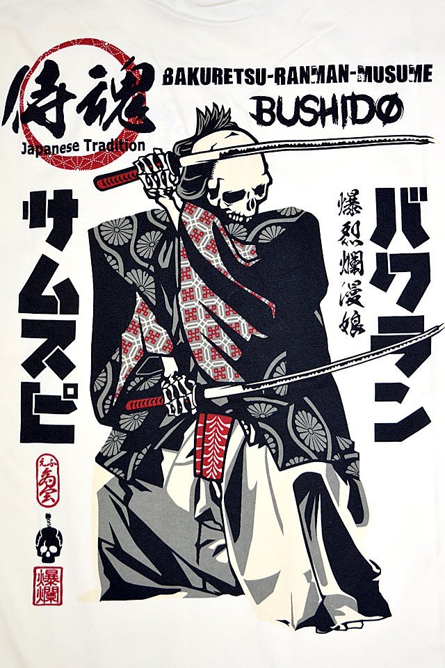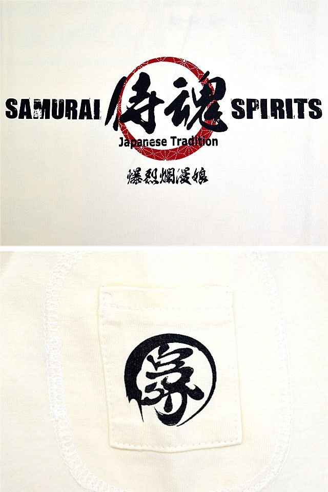 爆烈爛漫娘さんから「侍スピリッツ ロングTシャツ(RMLT-339)」のご紹介です。 人気の高いサムライスピリットシリーズから最新作が登場しました! 今回は、ドクロとなったサムライが二本の刀を構えるデザインです。 背中には二刀流のドクロ侍の立ち姿を描きました。 漢字と英語を絶妙に組み合わせ、和洋折衷な仕上がりとなっています。 右胸にはレタードをプリントし、左袖にはフラップ付きのミニポケットを縫い付けました。 ボディーには、爆烈爛漫娘お馴染のよれにくくタフな生地を採用しています。 | ||||||||||||||||||||||||||||||