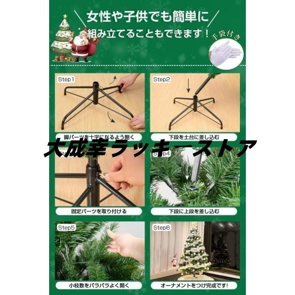 【組み立て簡単】このクリスマスツリーの組み立てには工具は不要です。二つに分かれた木を組み立て、枝を広げ、飾り付けるだけ。女性やお子様でも安心です。どこに置いても邪魔にならなくて、雰囲気作りにぴったりのクリスマスツリーです。(お客様の手を保護するために、手袋付き)