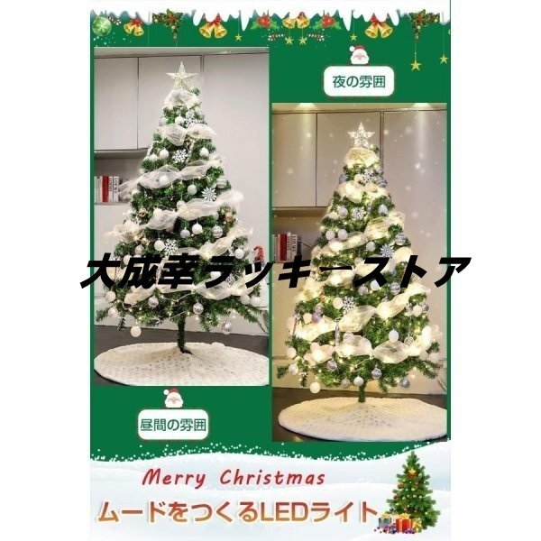 【100球LEDライト付き】LEDライトでツリー全体をクリスマスの雰囲気に包み込みます。夜で幻想的な光を演出して、夜の周りをより美しくさせ、最高な雰囲気を作ります。暖かくロマンチックな感じがします。電池式のLED球なので、充電する必要がなく、3本の電池だけでキラキラと点灯させます。また、点滅/常点灯の2つのモードを切り替えることができます。(ご注意:電池が付属していません。)