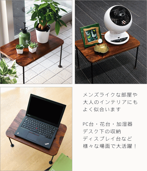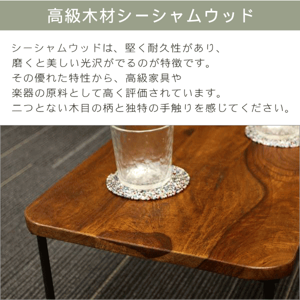 | シンプルでスタイリッシュな印象が人気の 天然木シーシャムウッド&アイアン家具シリーズ 一見、主張のないシンプルな小家具は インテリアとして意外なほどアクセントになるものです シーシャムの温かみとアイアンのシックな印象から 手仕事の味わいとモダンさが伝わってきます 小ぶりで、片手で持って移動できる 使い勝手の良い手頃なテーブルは サイドテーブルや、ちょっとした作業台、 花台や加湿器置きなど マルチに活躍してくれるアイテムです 商品名 : シーシャムスモールテーブル 商品番号 : kan3400 全体サイズ(cm) : 幅45×奥行30×高さ25.5 天板厚み(cm) : 1.5 材質 : シーシャムウッド アイアン 重量 : 3kg 生産国 : インド ※天然木を使用した手作り品の為、木部の擦り傷、反り、脚の傾き、小さながたつき等が見られます ※傷防止フェルトをお付けしてお届けします ※ディスプレイによる色の違いはご了承下さい |