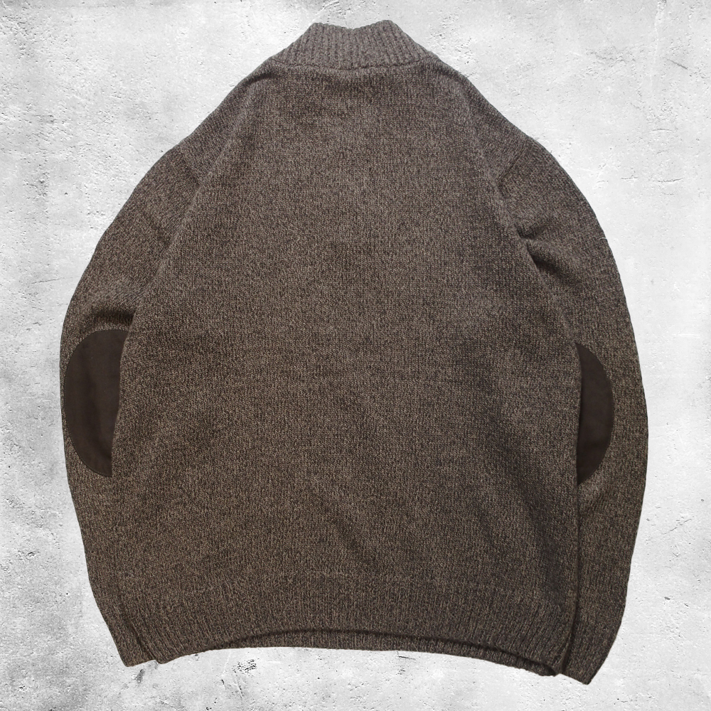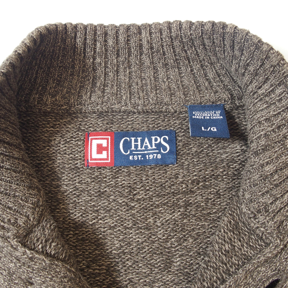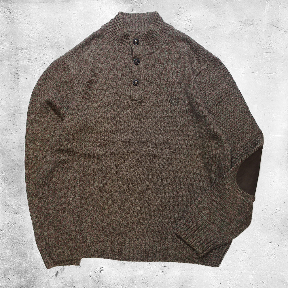 CHAPS ハーフボタン ニット コットンニット チャップス ブラウン エルボーパッチ Lサイズ