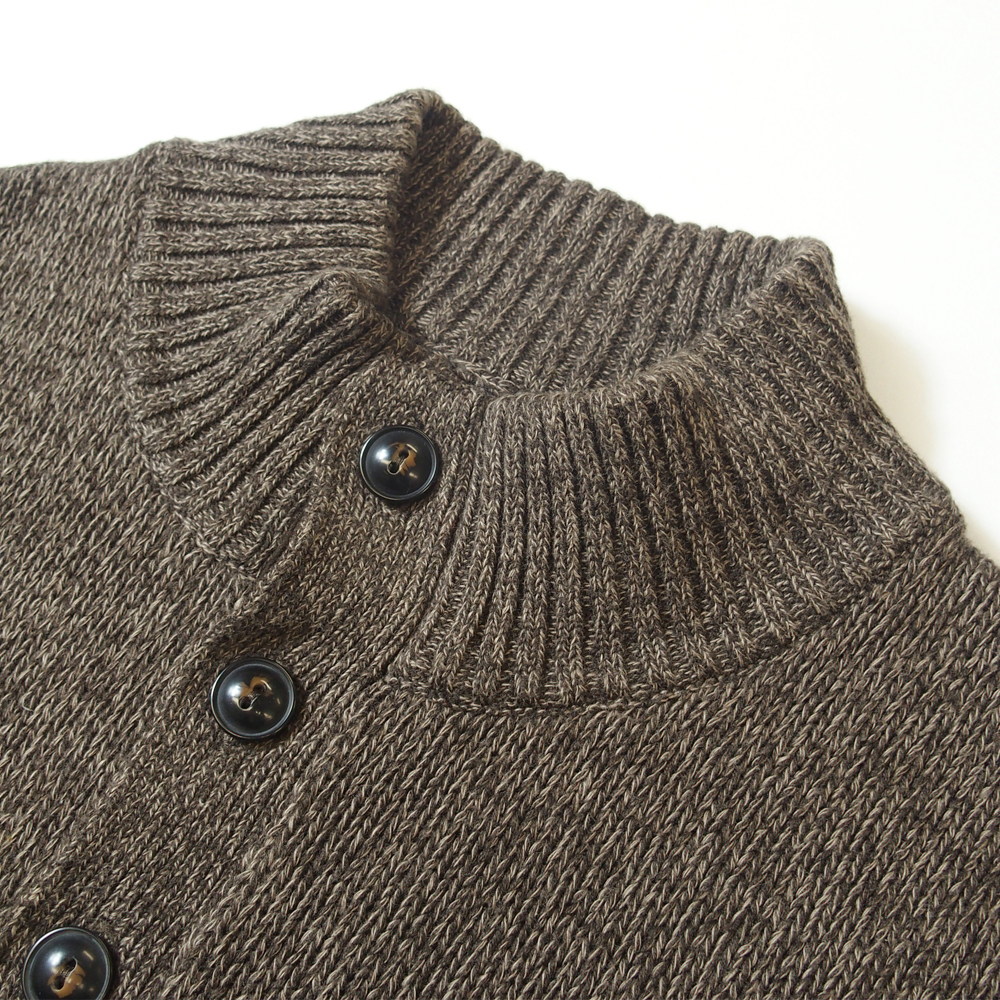 ハーフボタン、エルボーパッチがこだわりのコットンセーター。
