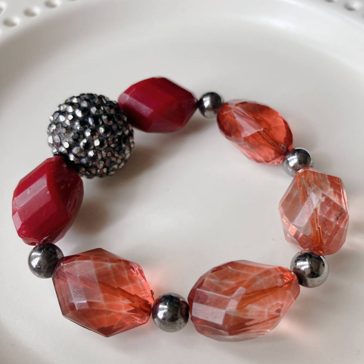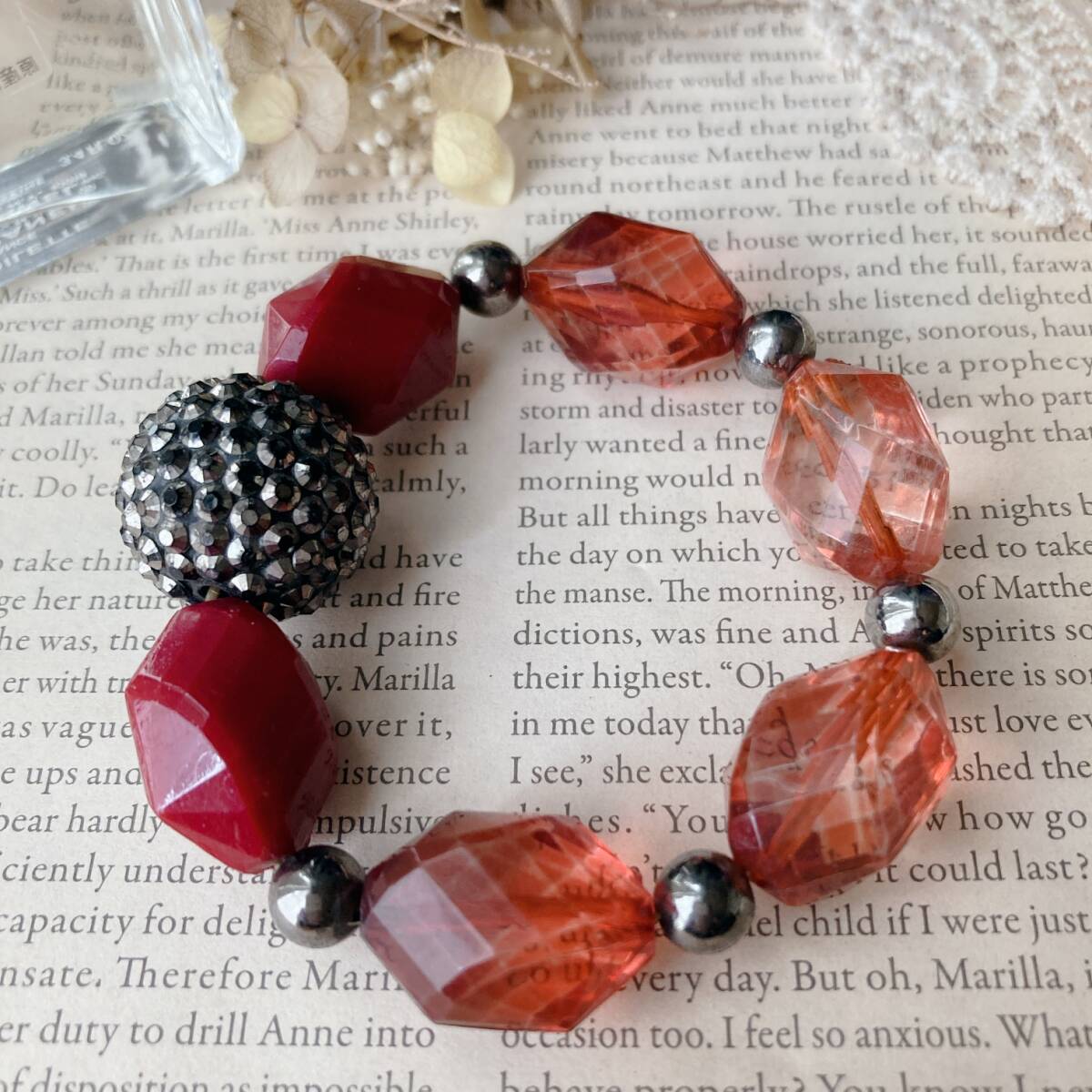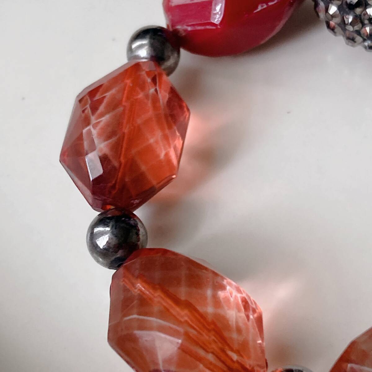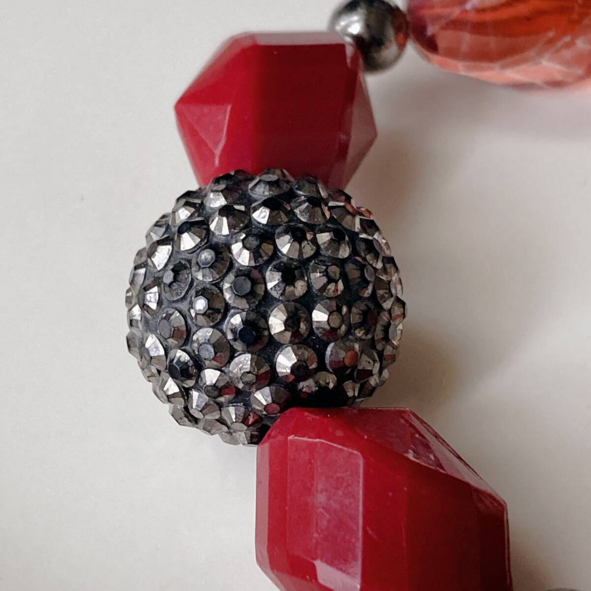 ブレスレット 特大ビーズ レッド メタルラズベリーボール 多面カット シルバー伸縮☆Vintage jewelry accessories R0081