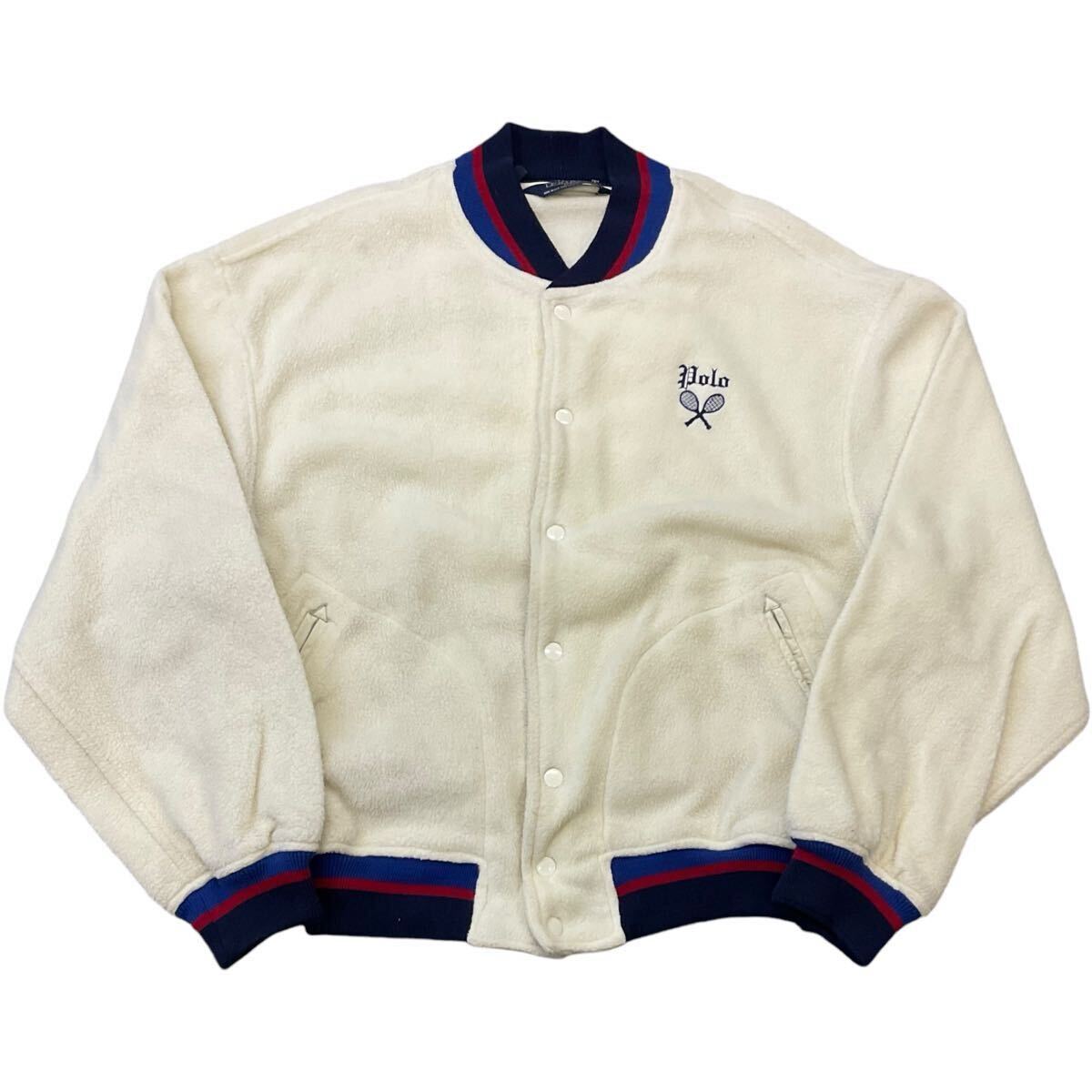 90s USA製 Polo by Ralph Lauren フリース スタジャン XL テニス ロゴ 刺繍 varsity jacket ジャケット ポロ ラルフローレン ヴィンテージ