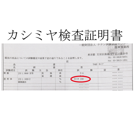 洗濯表示札にカシミヤ100%の記載があります。