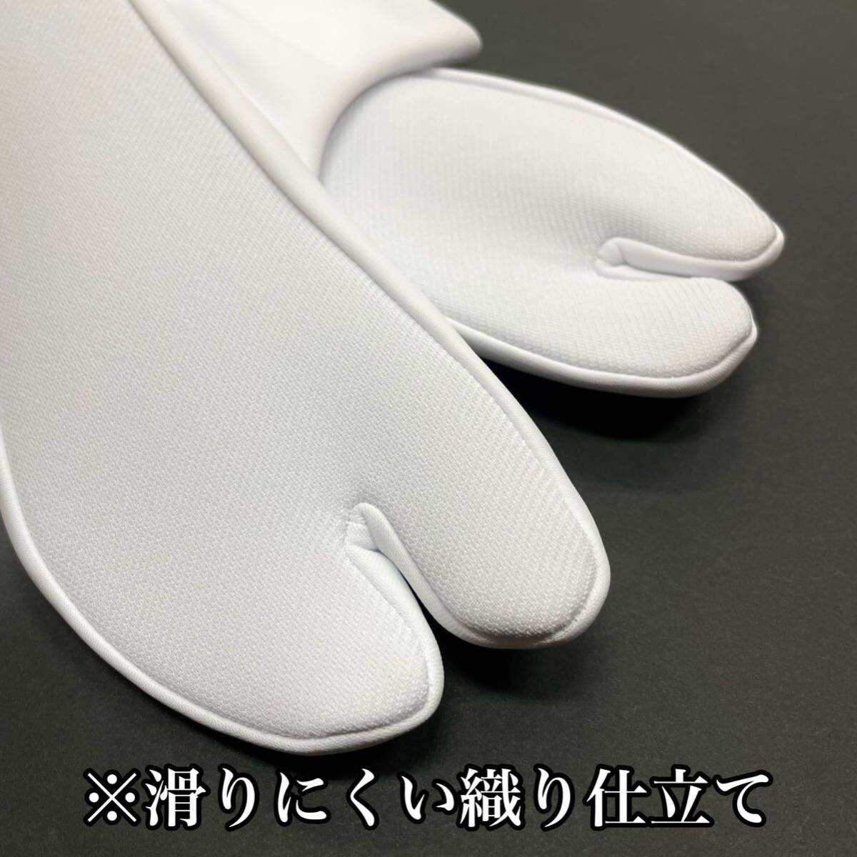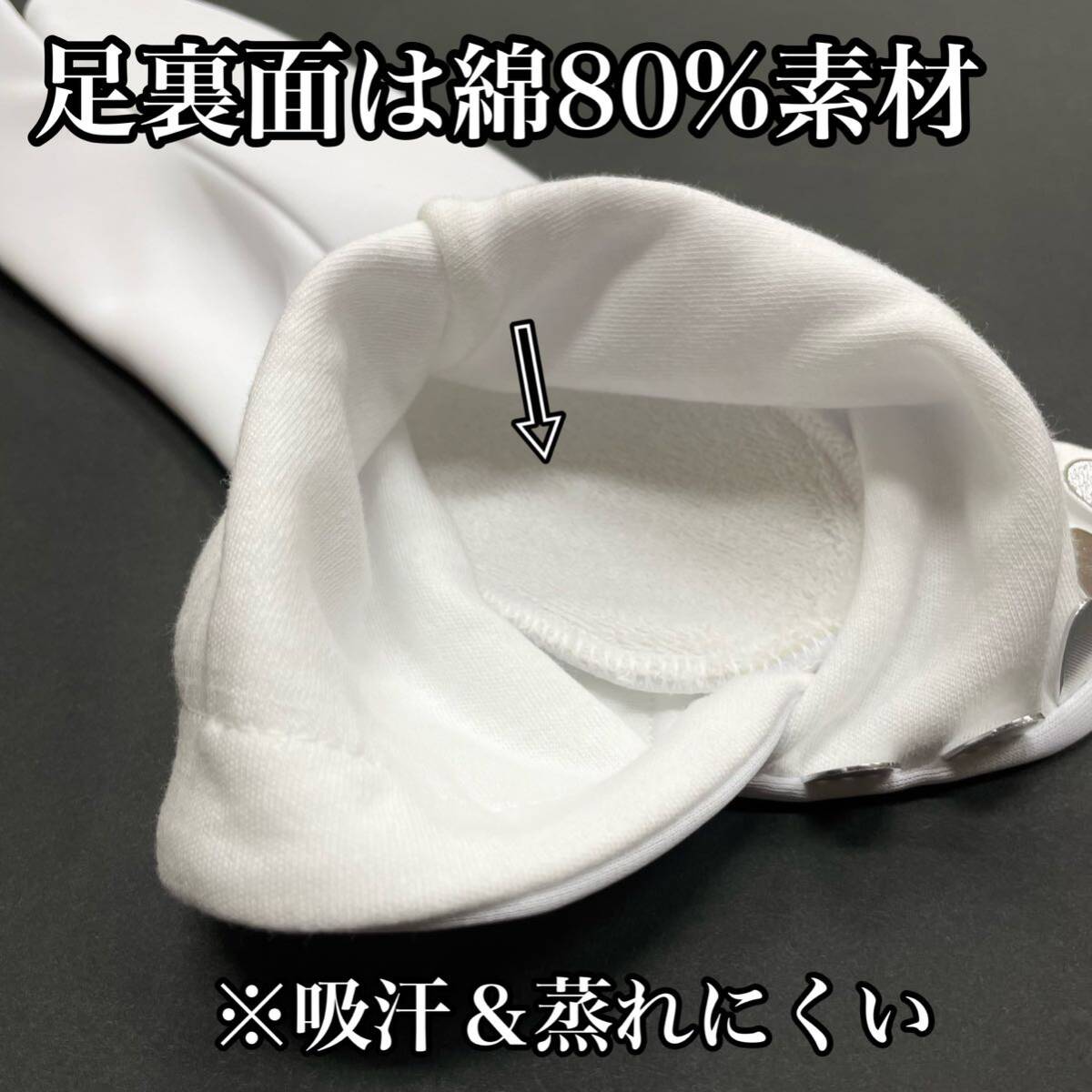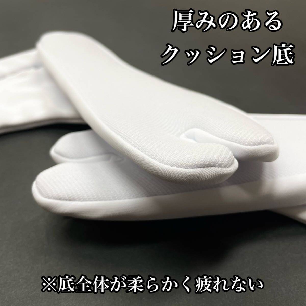 こちらは甲まわりに伸縮性があってピッタリとフィットする「のびる足袋」となっており、底裏面は「綿80%入りの素材」ですのでナイロン足袋特有の蒸れやすさや滑りやすさなどもなく、さらに【底内面に薄いクッション入り】なので足元も疲れにくく、あらゆるシーンでご愛用いただける足袋となっております。
